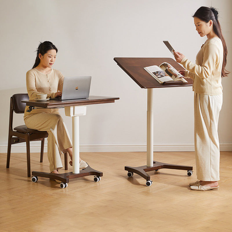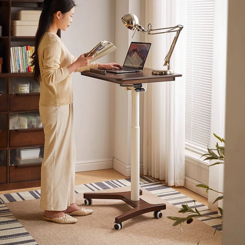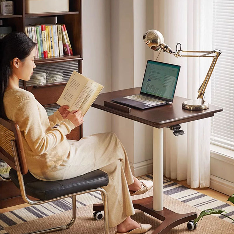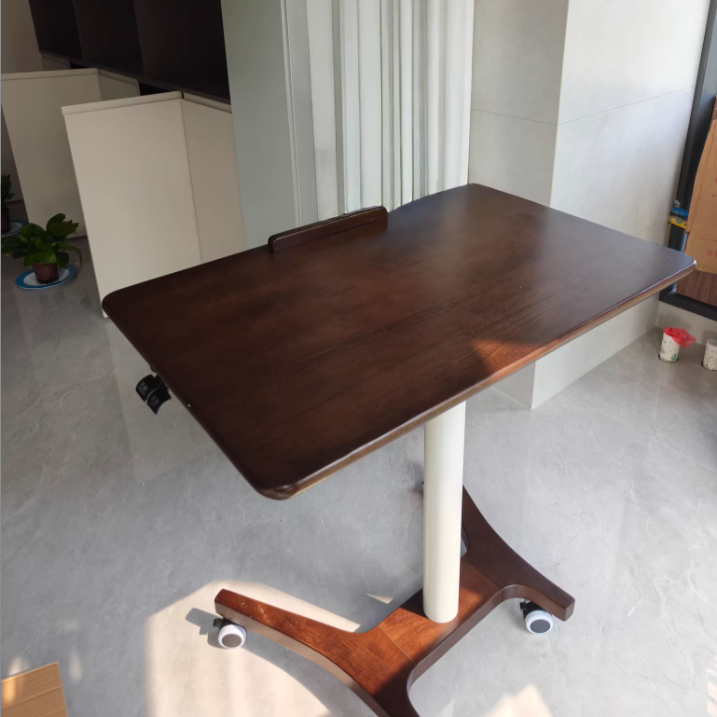 This Traditional Chinese rubber wood side table features a height-adjustable, movable rectangular design with a single-tier structure, ideal for home office, study, or bedside use in the living room. Finished in walnut, black, or white, it supports sit-to-stand working, offers 90-degree foldability for space saving, and delivers strong load-bearing stability, combining ergonomic flexibility with durable everyday performance.