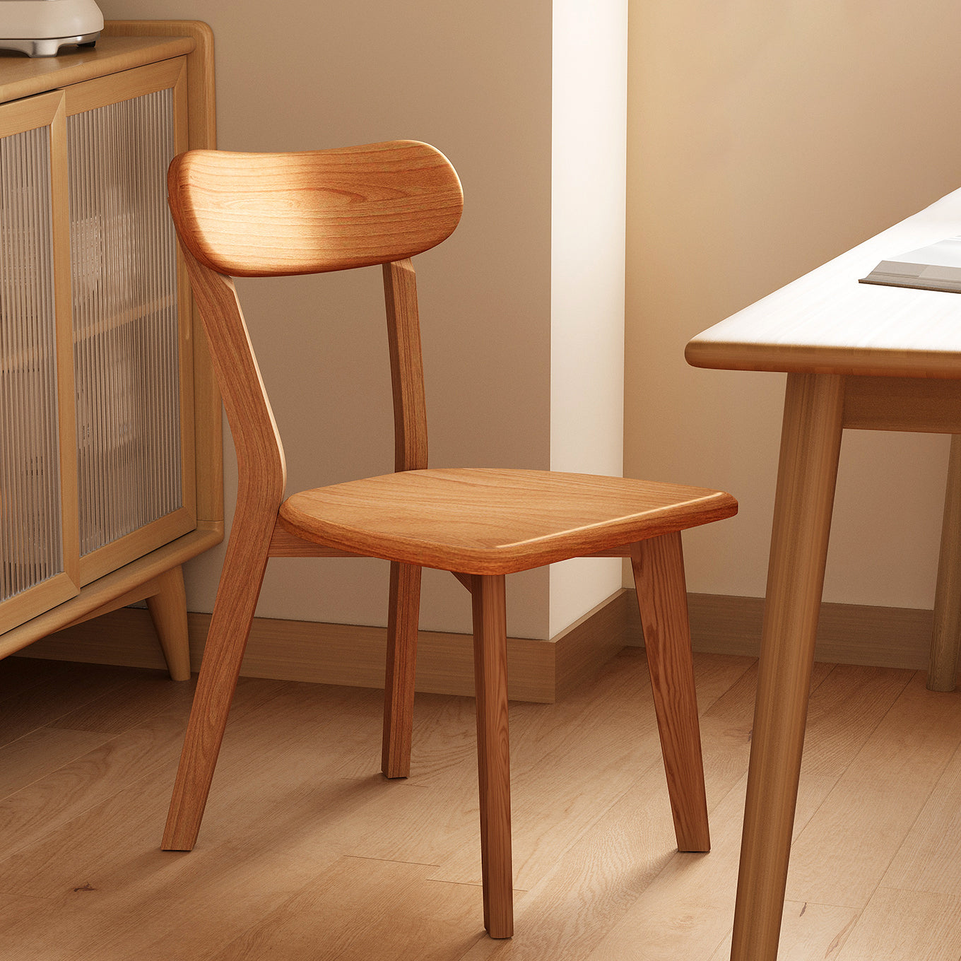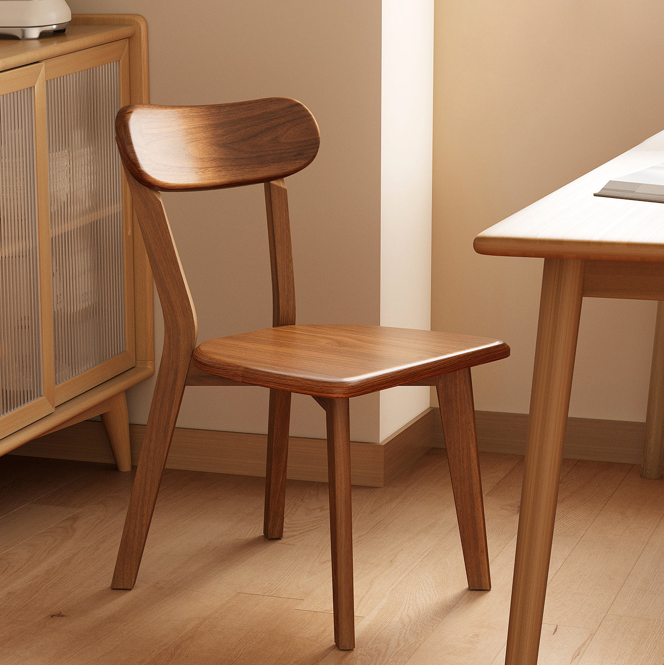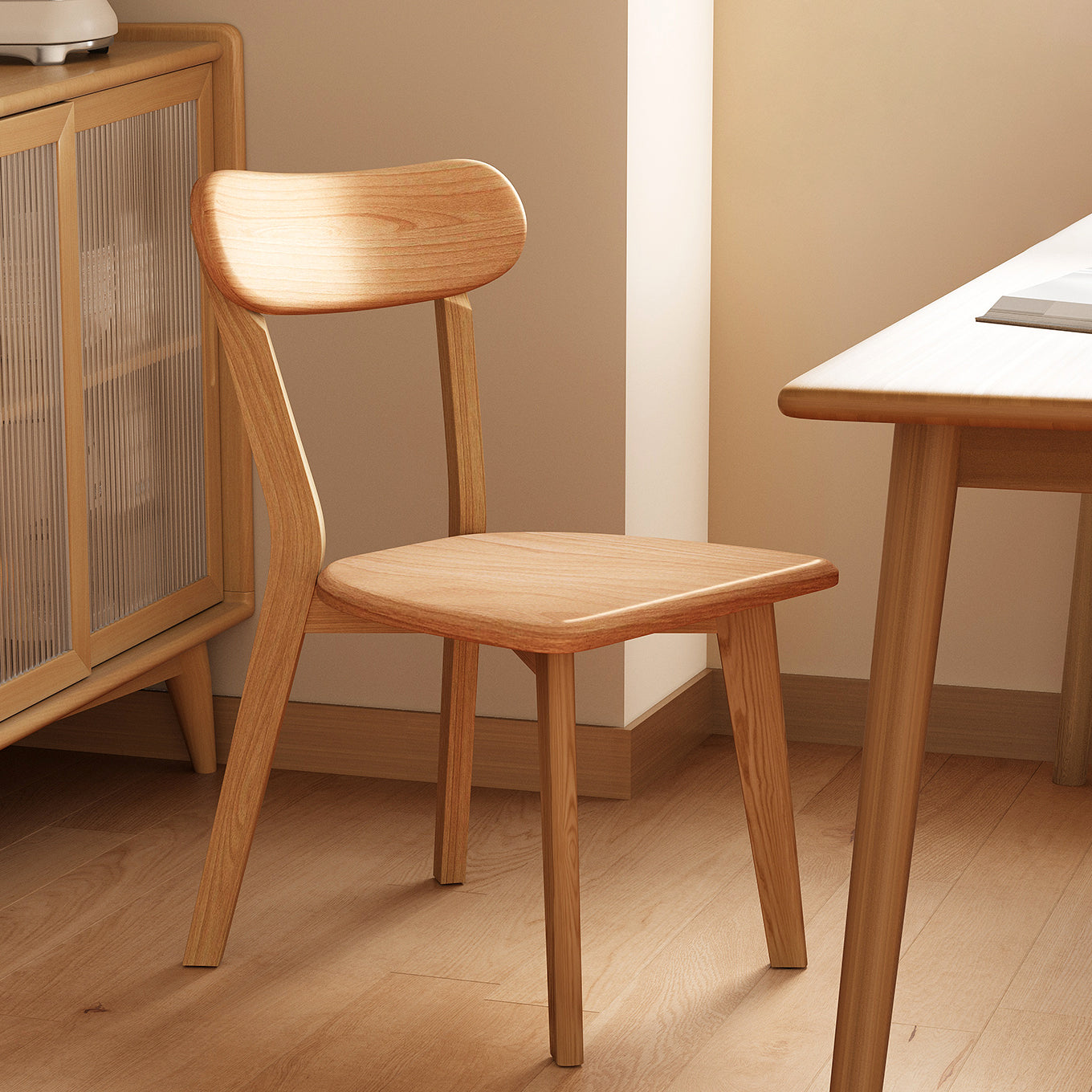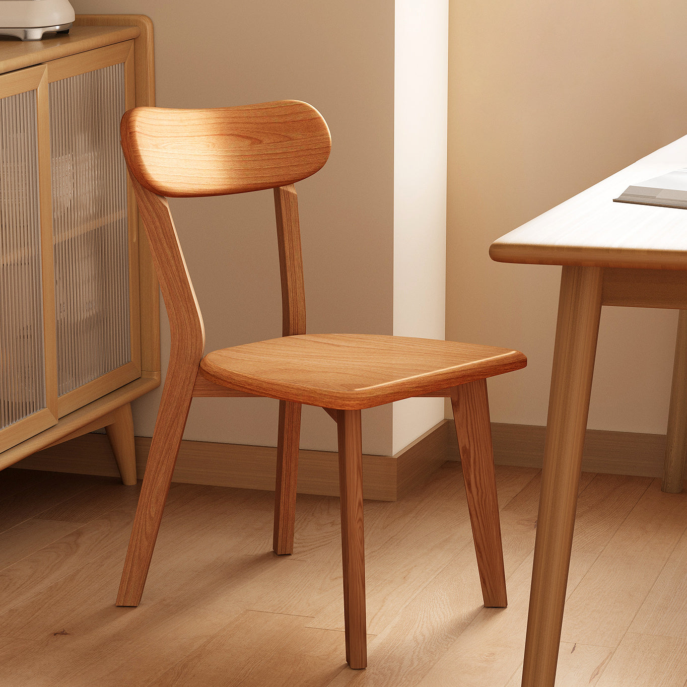 Traditional Chinese Rubberwood Curved Dining Chair With Backrest For Dining Room