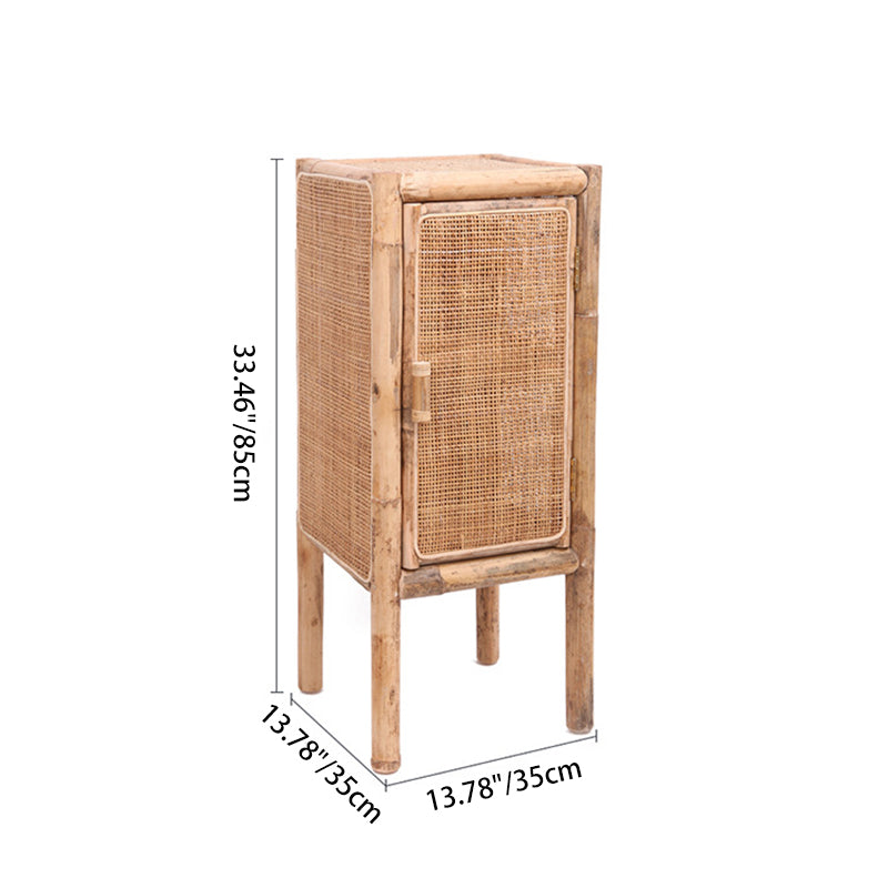 Designed to bring elegance and efficiency to compact spaces, this narrow, Chinese-inspired storage cabinet features elongated proportions that create a light, upright presence. It masterfully balances traditional solid wood craftsmanship with a modern sense of refinement, highlighted by a handwoven natural rattan door that adds rich texture, breathability, and visual depth. Within its slender frame, two practical shelves provide organized storage for everything from books and tea sets to daily essentials. Whether placed in an entryway, hallway, or study, this versatile piece serves as a functional art form that enhances both the utility and the aesthetic soul of your home.