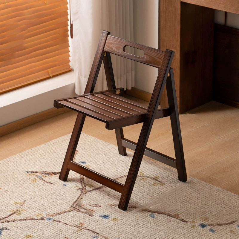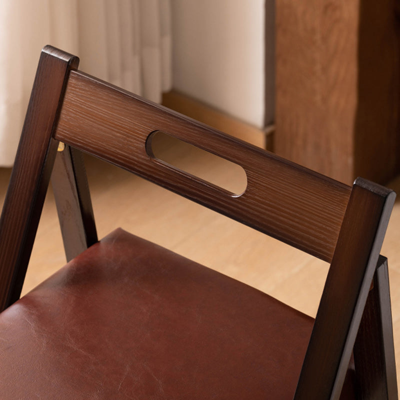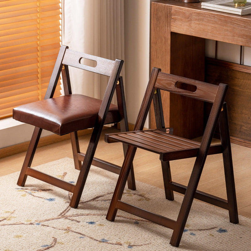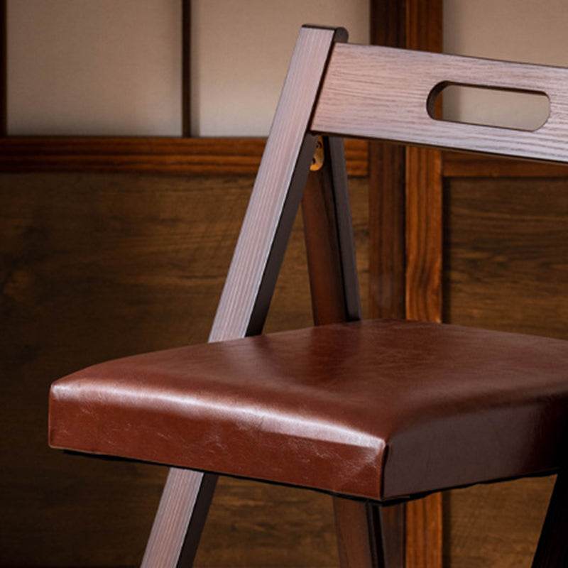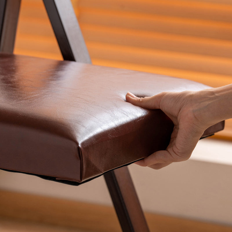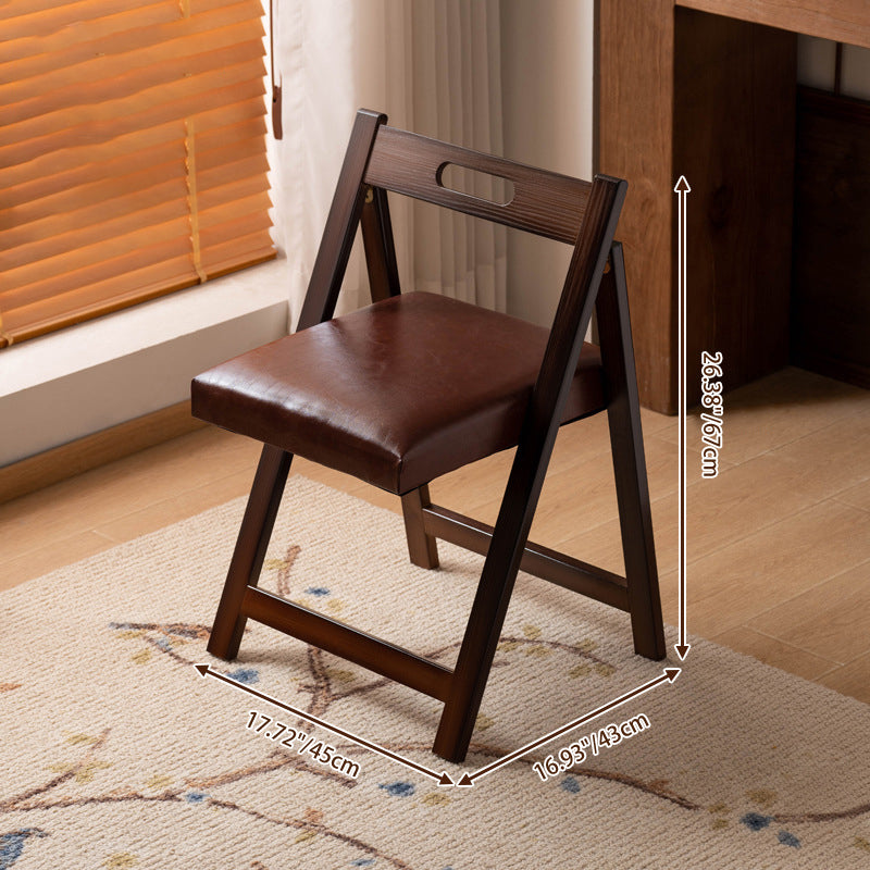 Traditional Chinese Square Rectangular Faux Leather Solid Wood Plywood Foldable Dining Chair Backrest Armless For Dining Room & Kitchen