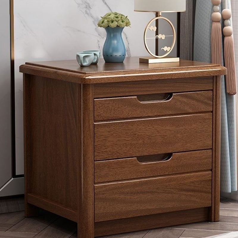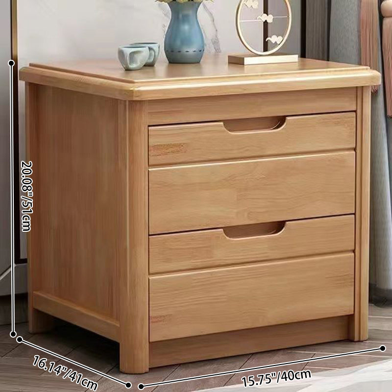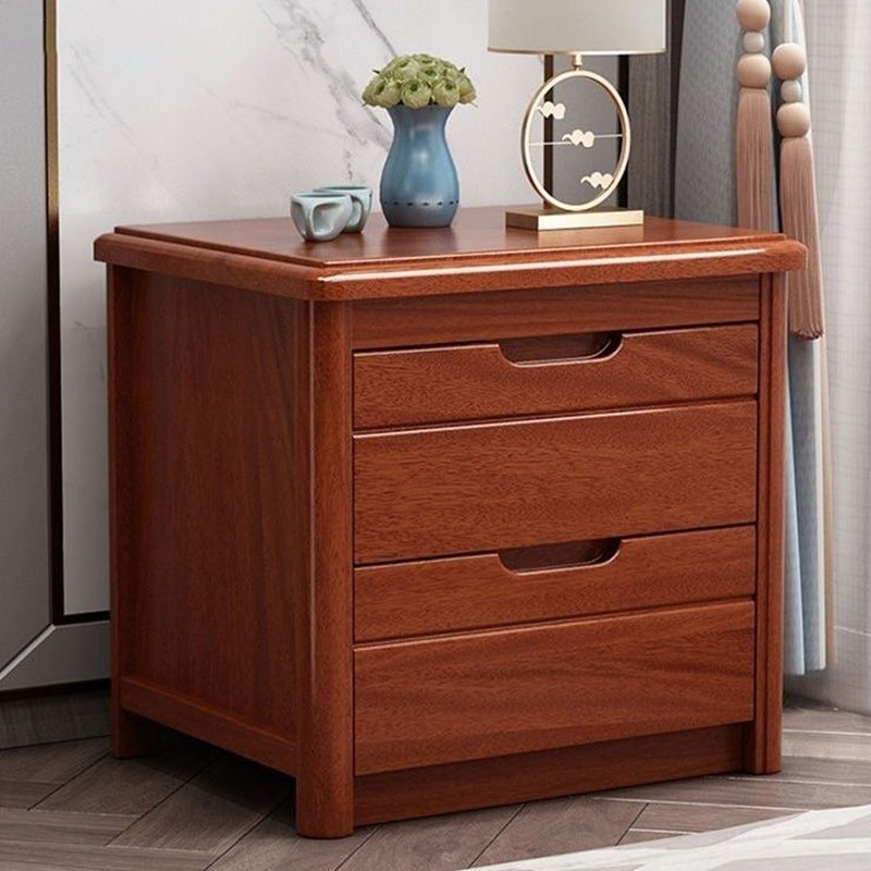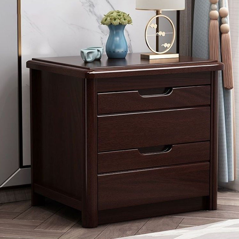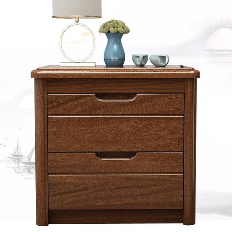 Traditional Chinese Square Rectangular Rubberwood Solid Wood Plywood Nightstand 2-Drawer For Bedroom