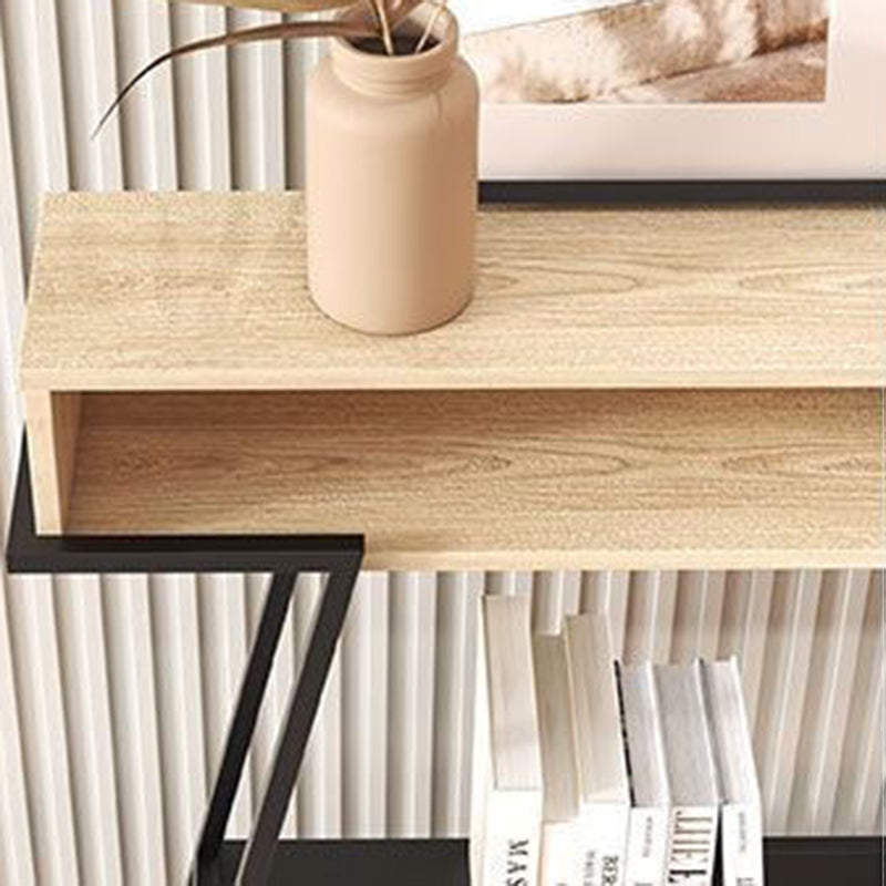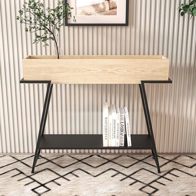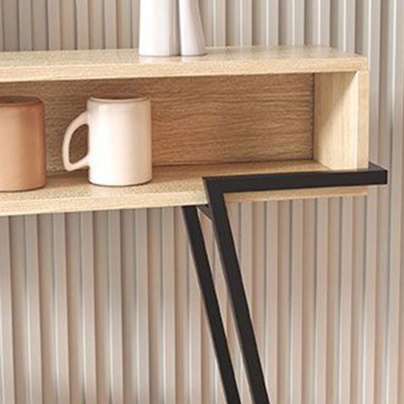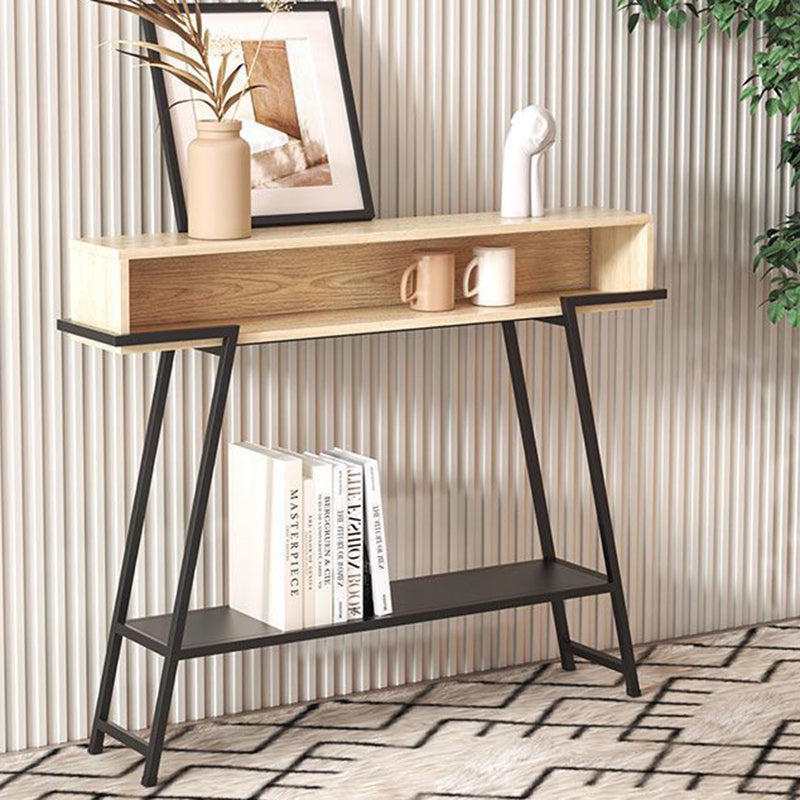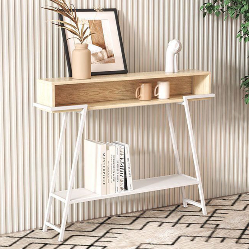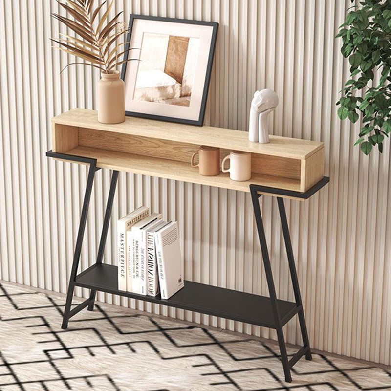 This modern minimalist entryway console table features a rectangular solid wood tabletop supported by a sturdy iron frame, designed with a practical 3-tier open storage structure. Available in black or white, it provides a large-capacity surface and stable iron construction, ideal for use in entryways, living rooms, or bedrooms.