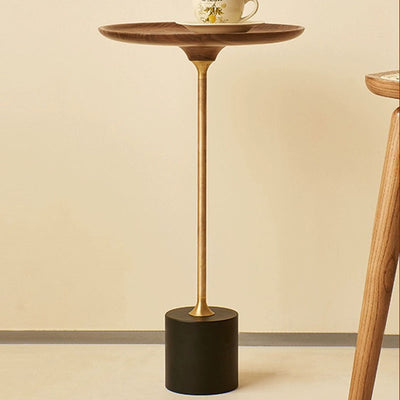 Contemporary Simplicity Round Walnut Copper Carbon Steel Side Table 1-Tier For Living Room
