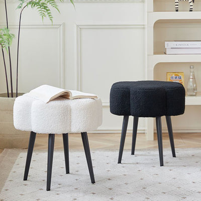 Modern Minimalist Petal-Shaped Solid Wood Chenille Upholstery Sponge Cushion Vanity Stool For Bedroom