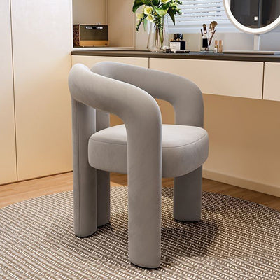 Modern Minimalist Arched Round Brushed Velvet Metal Foam Vanity Stool Backrest Armless For Bedroom