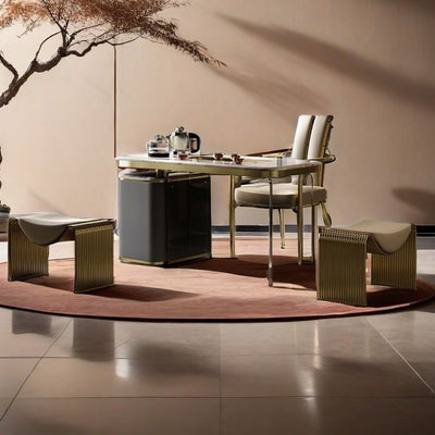 Modern Minimalist Rectangular PU Leather Sponge Cushion Iron Vanity Stool For Bedroom