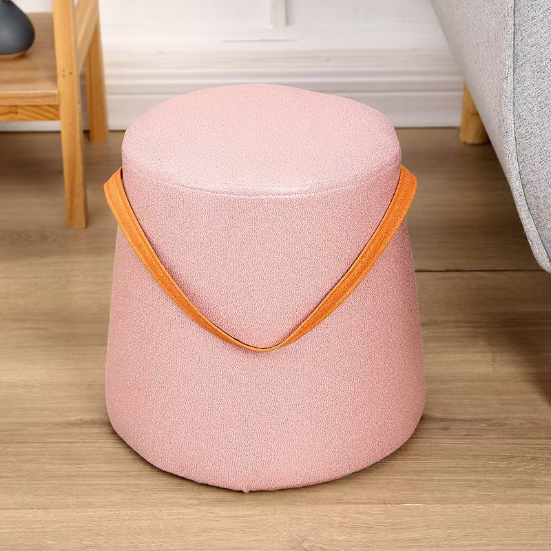 Zeitgenössischer nordischer Leinenstoff Holz Schwamm runder Zylinder Fußhocker tragbar für Eingangsbereiche