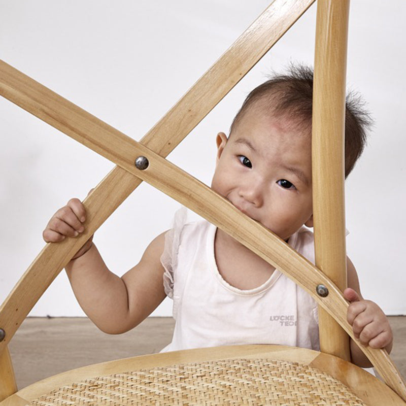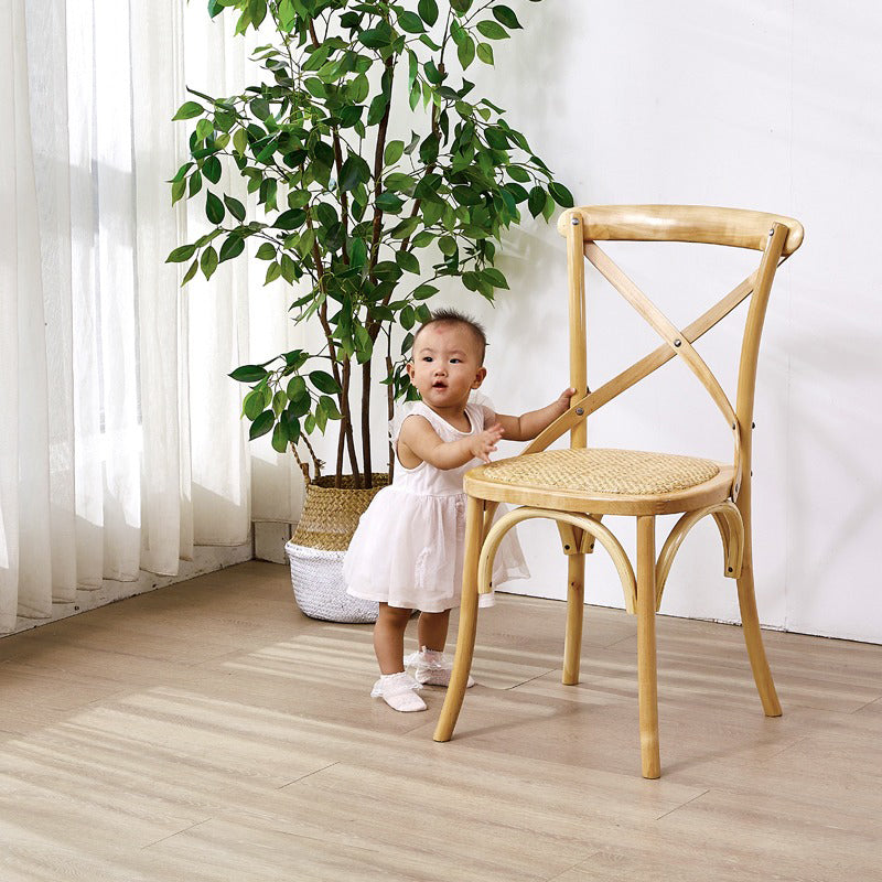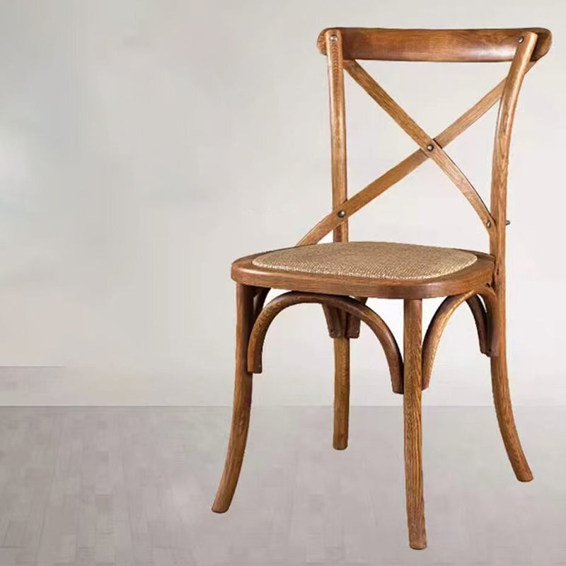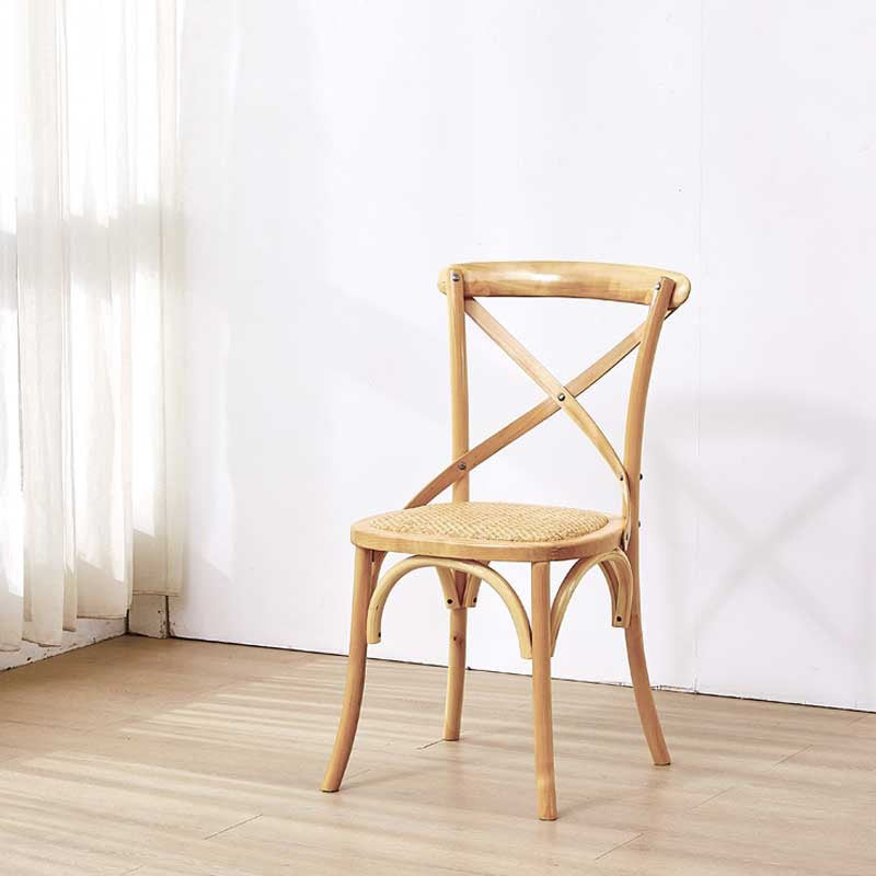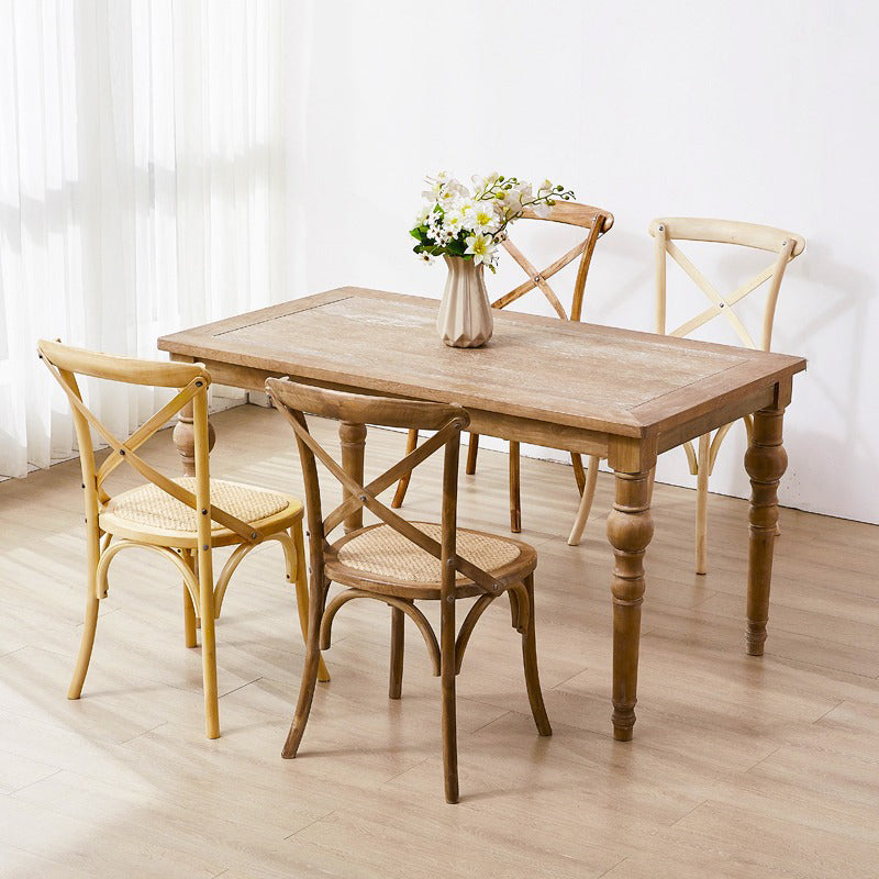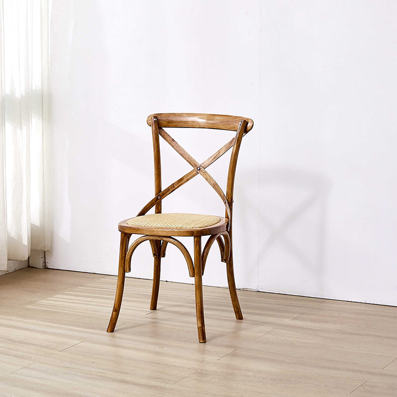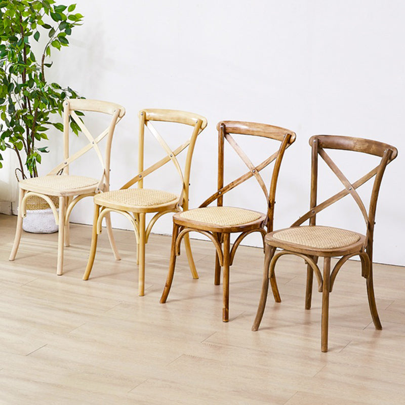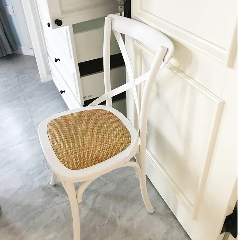 Traditional Farmhouse Square Birch Wood Solid Wood Multi-Layer Solid Wood Panel Indonesian Rattan Backrest Dining Chair For Dining Room