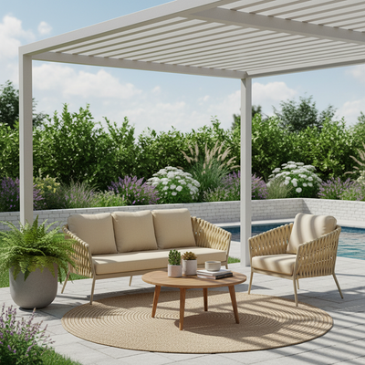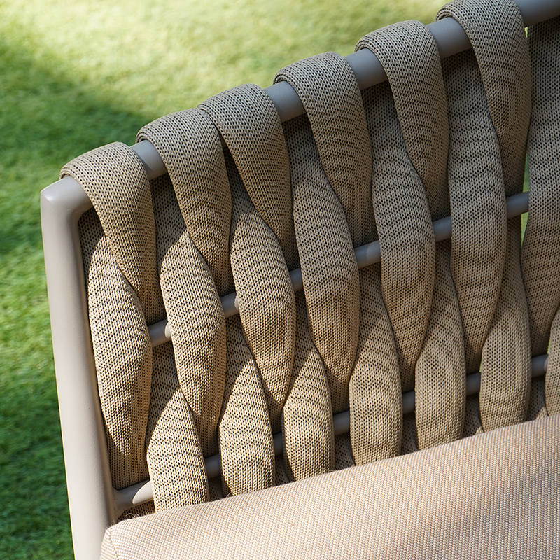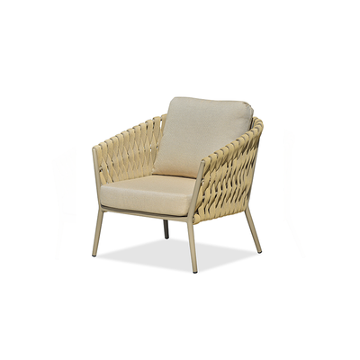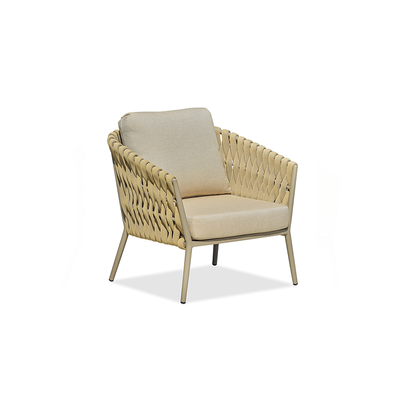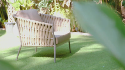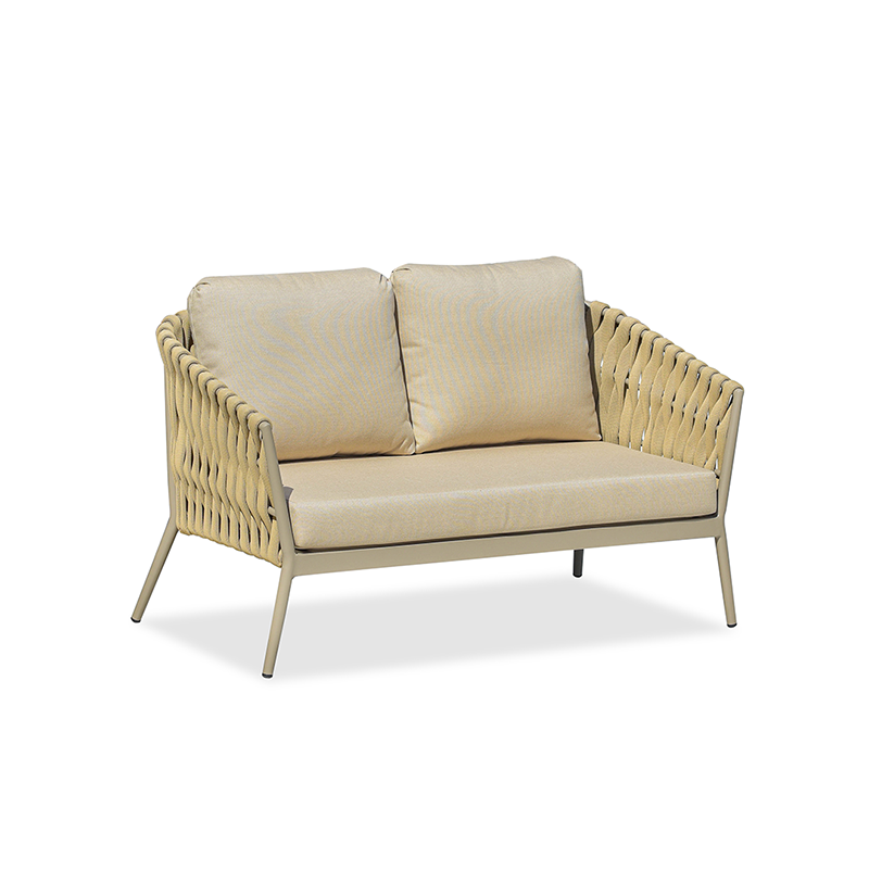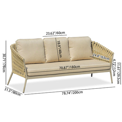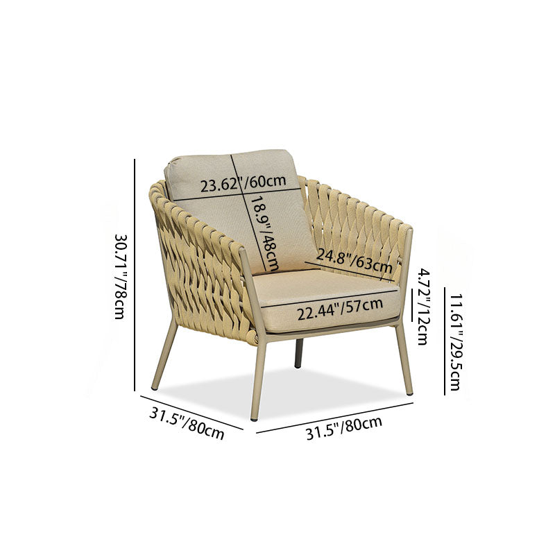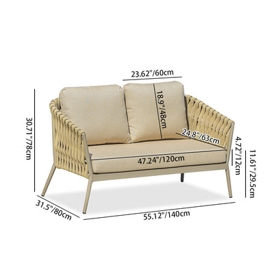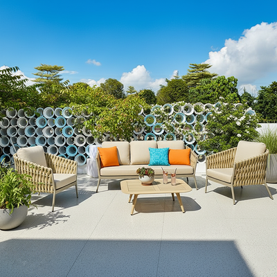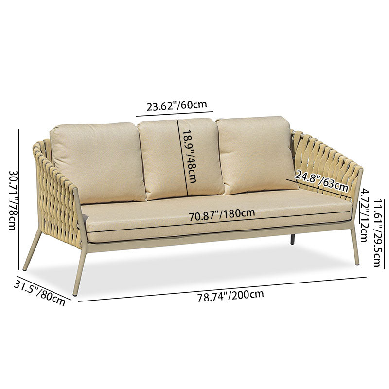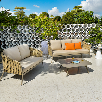 Upgrade your outdoor living space with this modern rope woven sofa set designed for style, durability, and comfort. Featuring clean, flowing lines and wide nylon rope weaving on the backrest and armrests, the design creates a three-dimensional layered look that feels both sturdy and lightweight. The rust-resistant aluminum alloy frame ensures long-term outdoor use while remaining lightweight and easy to move. Thick, plush cushions are filled for lasting comfort, with UV- and weather-resistant fabric that stays fresh and beautiful season after season.