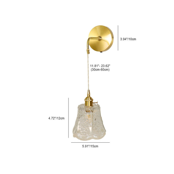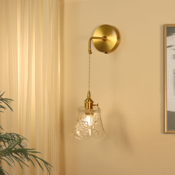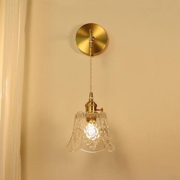 Traditionelle französische 1-flammige Wandleuchte aus Messing mit geschnitztem Glas für Schlafzimmer