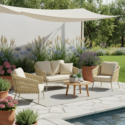 Traditional French Outdoor Rope Woven Sofa - 1/2/3 Seater For Balcony & Outdoor Patio