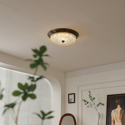 Traditional French Glass Iron Textured Round LED Flush Mount Ceiling Light For Bedroom