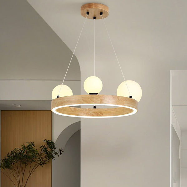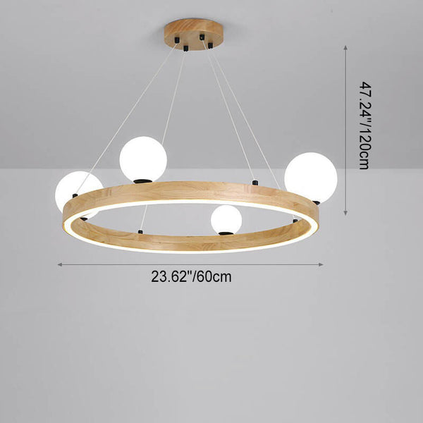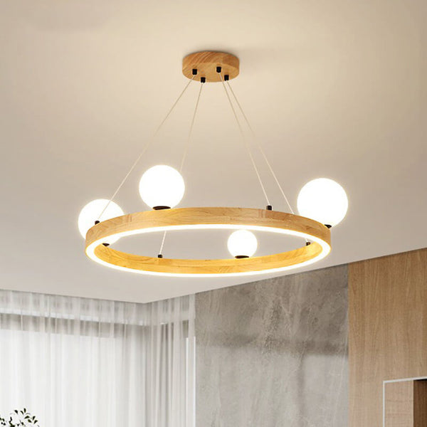 Nordic Minimalist Holzkreis Glasball 3/4 Licht Kronleuchter