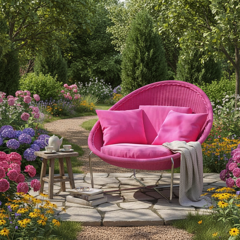 Relax in style with this modern minimalist outdoor lounge chair, featuring a durable aluminum alloy frame and weather - resistant olefin rope weave. The curved pink design with supportive armrests and backrest offers stability, comfort, and a touch of elegance - perfect for gardens, patios, resorts, or vacation homes.