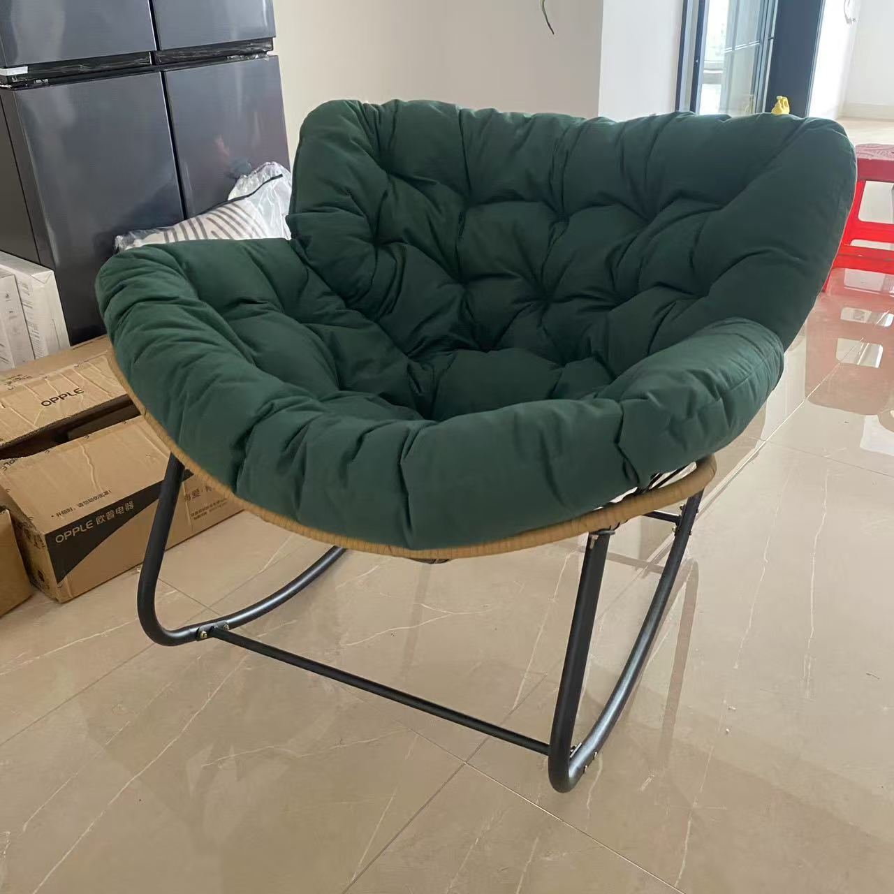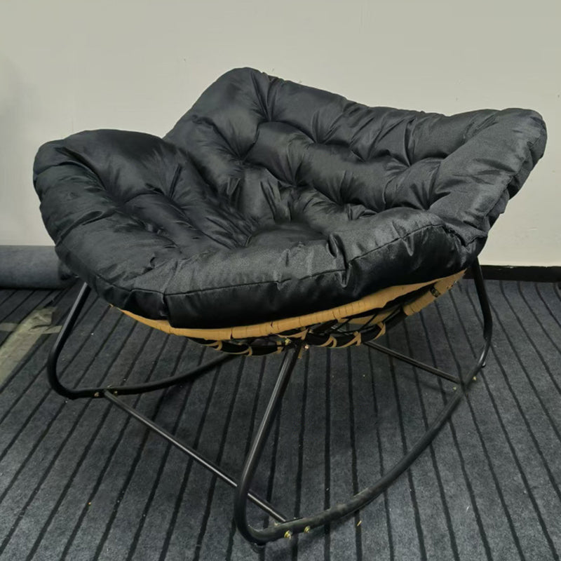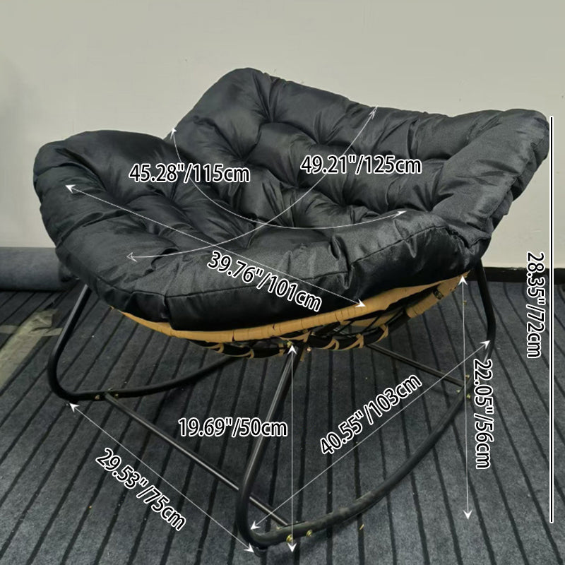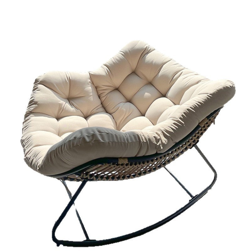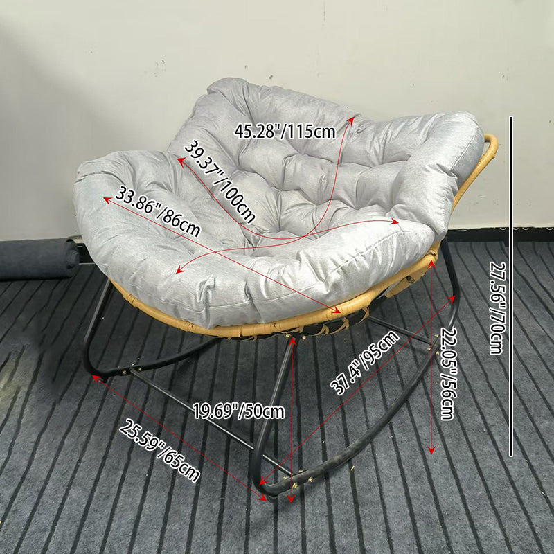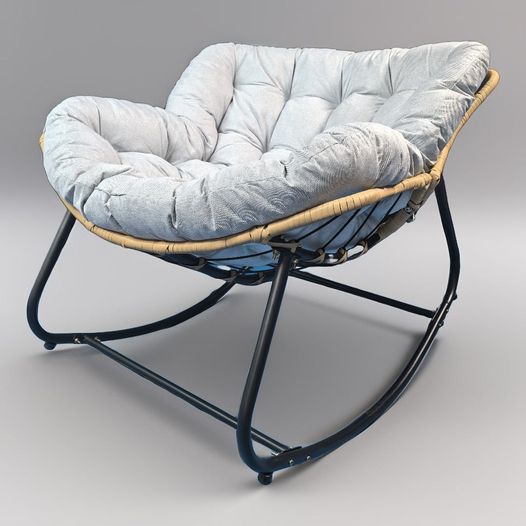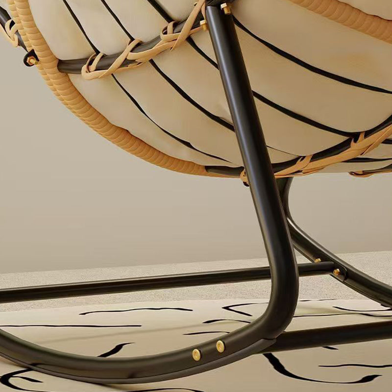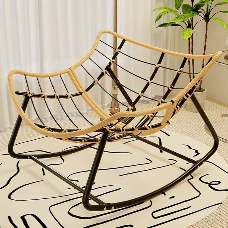 Modern Minimalist Curved Bird's Nest Carbon Steel Linen-Blend Tech Fabric PE Rattan Rocking Chair Backrest Armless For Living Room