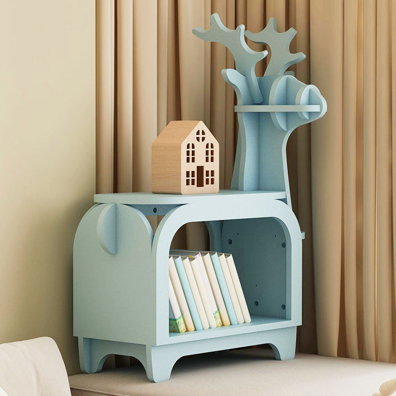 Crafted with a charming moose silhouette, this modern art deco solid wood bookcase seamlessly blends playful design with functional storage for children's rooms, offices, or living areas. Its sturdy 2-tier construction ensures long-lasting durability and a reliable display for books, toys, or decor, while the versatile color palette—including natural wood, walnut, blue, and white—allows it to complement any interior style with ease.