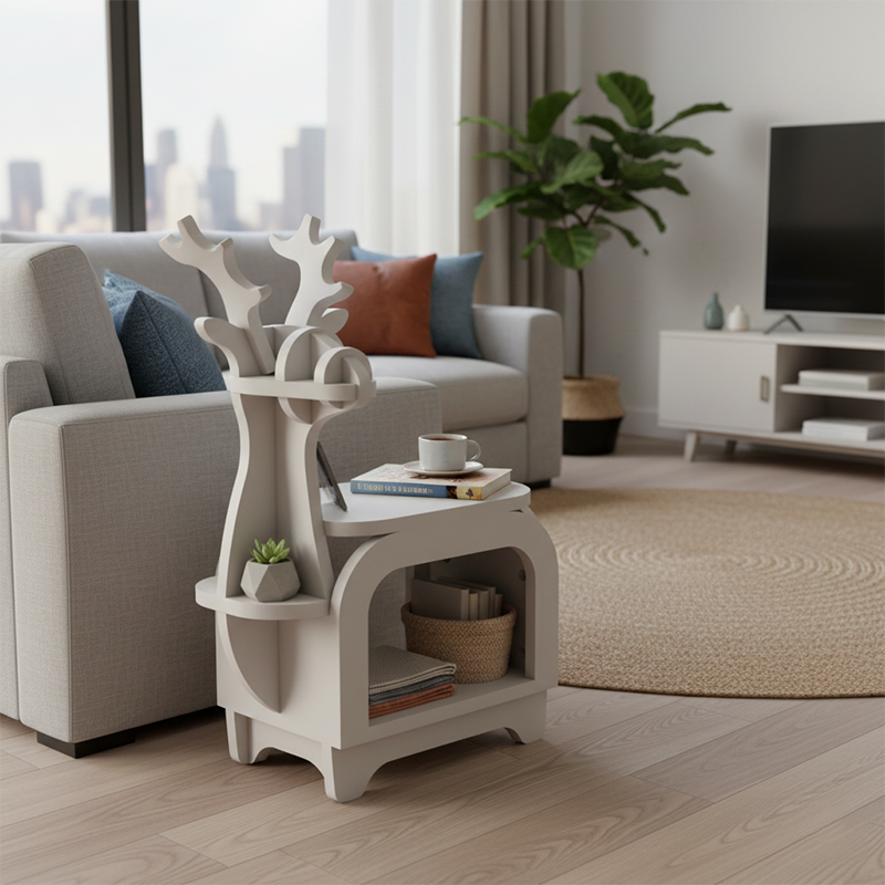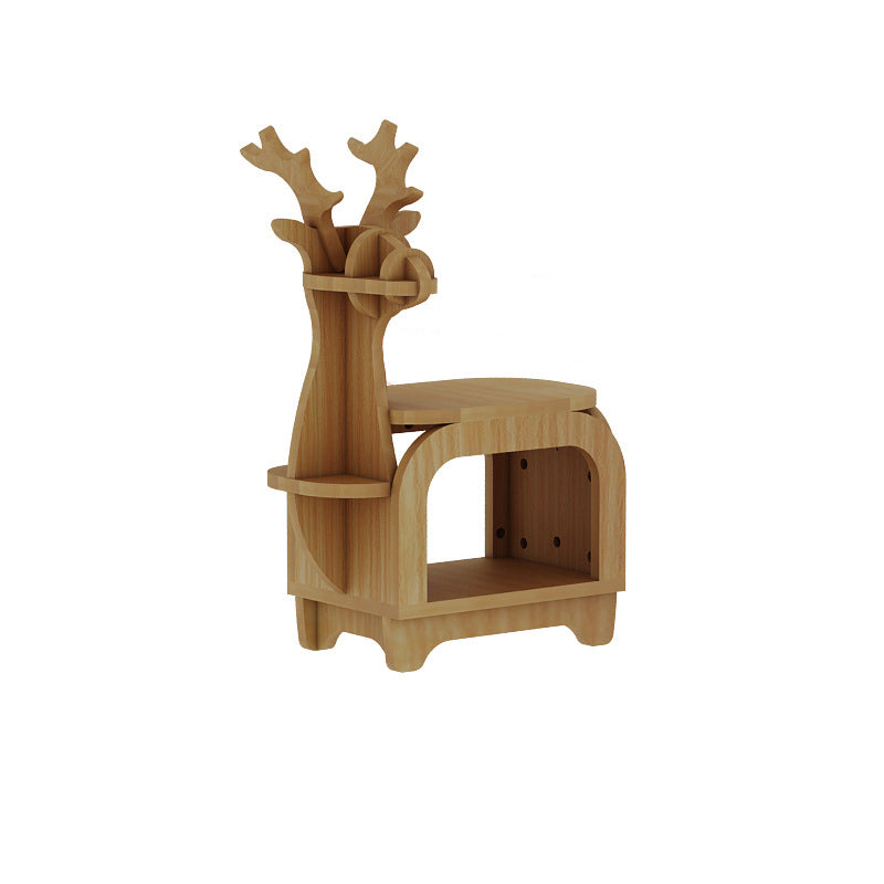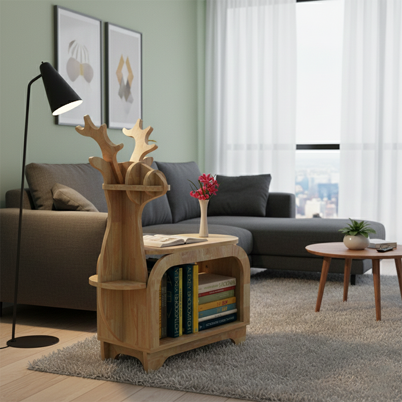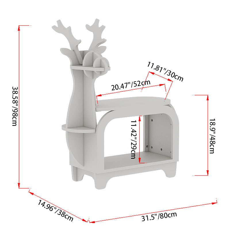 Modern Art Deco Reindeer-Shaped Solid Wood Multi-Layer Panel Bookshelves 2-Tier For Living Room