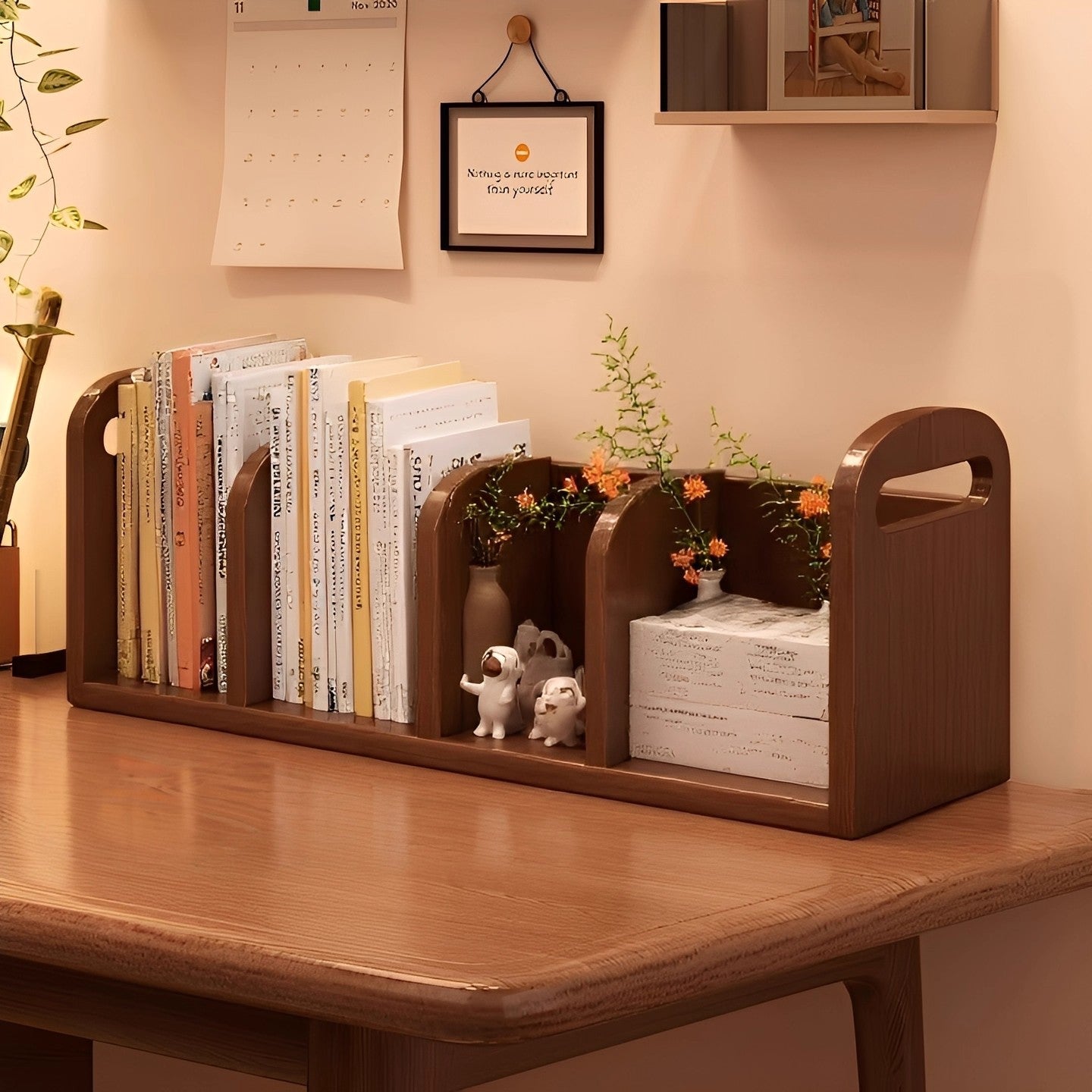 This modern minimalist desktop storage shelf is crafted from durable MDF with a soft curved rectangular silhouette, designed for compact organization in living rooms, home offices, or study areas. Featuring 2 or 4 cubbies, a pine-tone finish, rounded anti-bump corners, and a full back panel for added stability, it keeps books and daily essentials neatly stored while maintaining a clean, modern look.