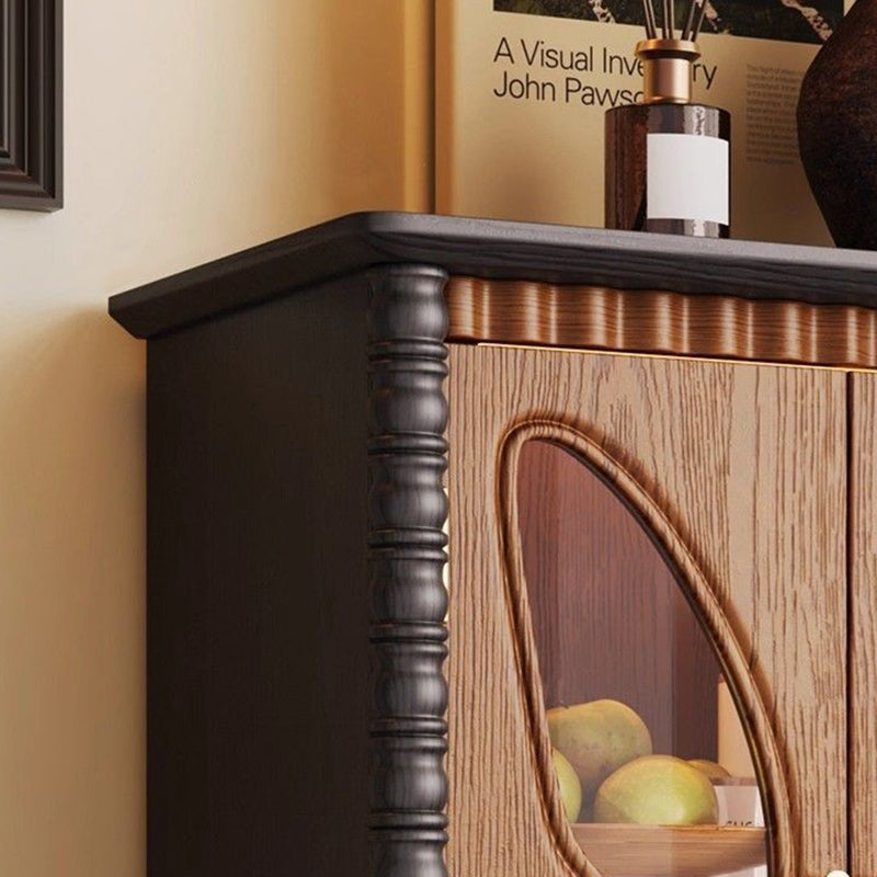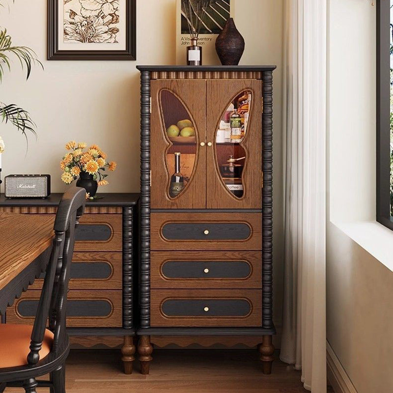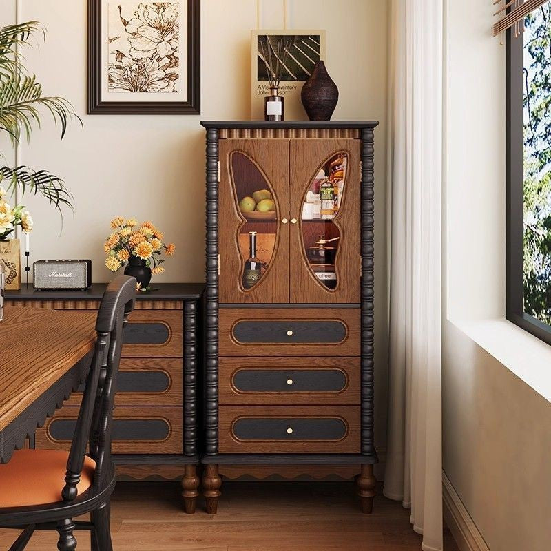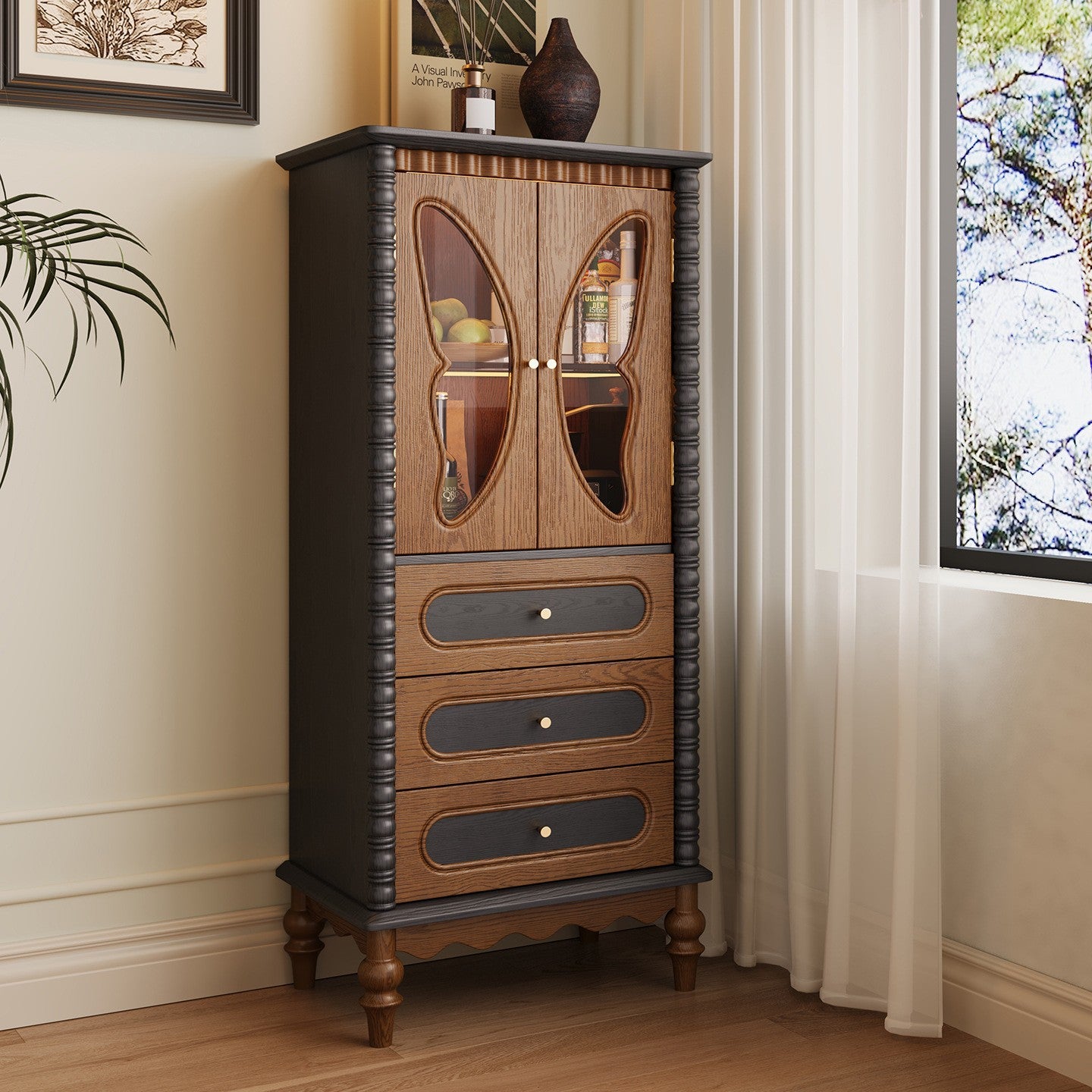 This Traditional French storage cabinet blends ash wood and glass with a unique butterfly-accented round and rectangular design, available in black and vintage finishes to enhance modern classic interiors. Featuring large-capacity drawers, heavy-duty metal glides, and a sturdy load-bearing structure, this versatile accent cabinet, entryway cabinet, and living room storage solution keeps essentials organized while adding refined character to your space.