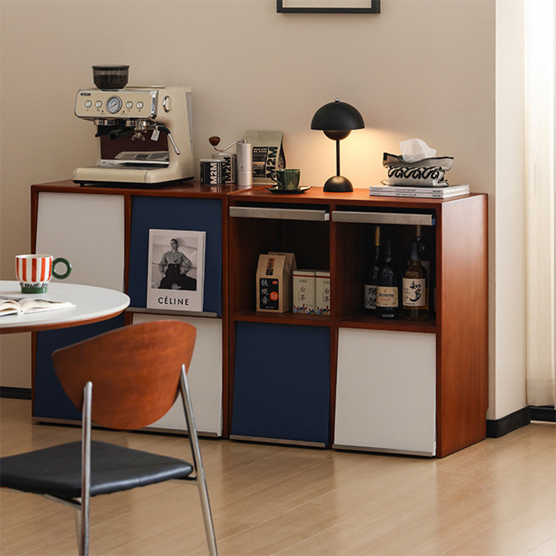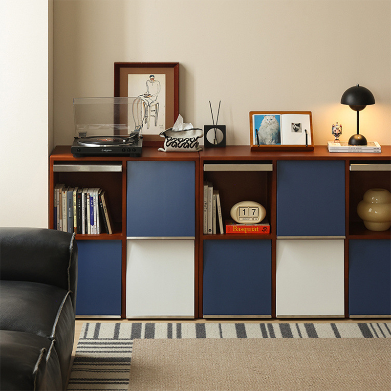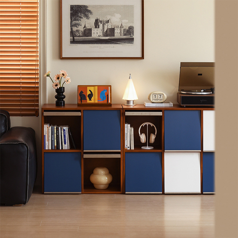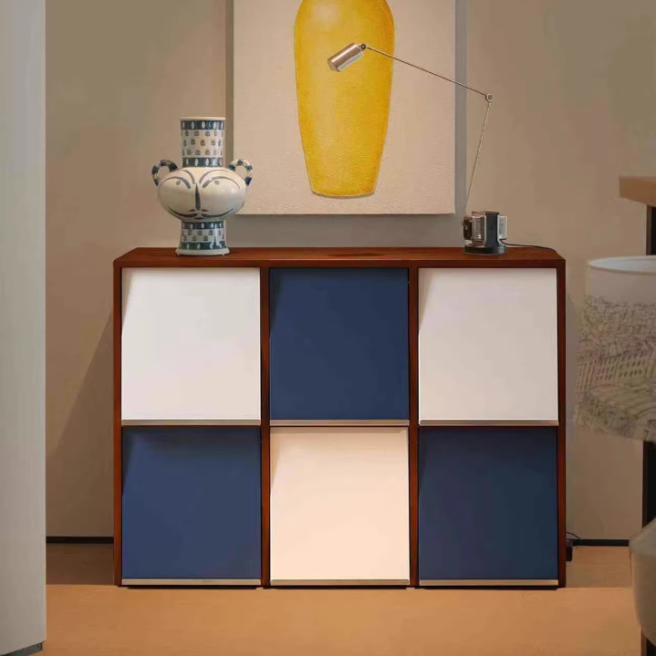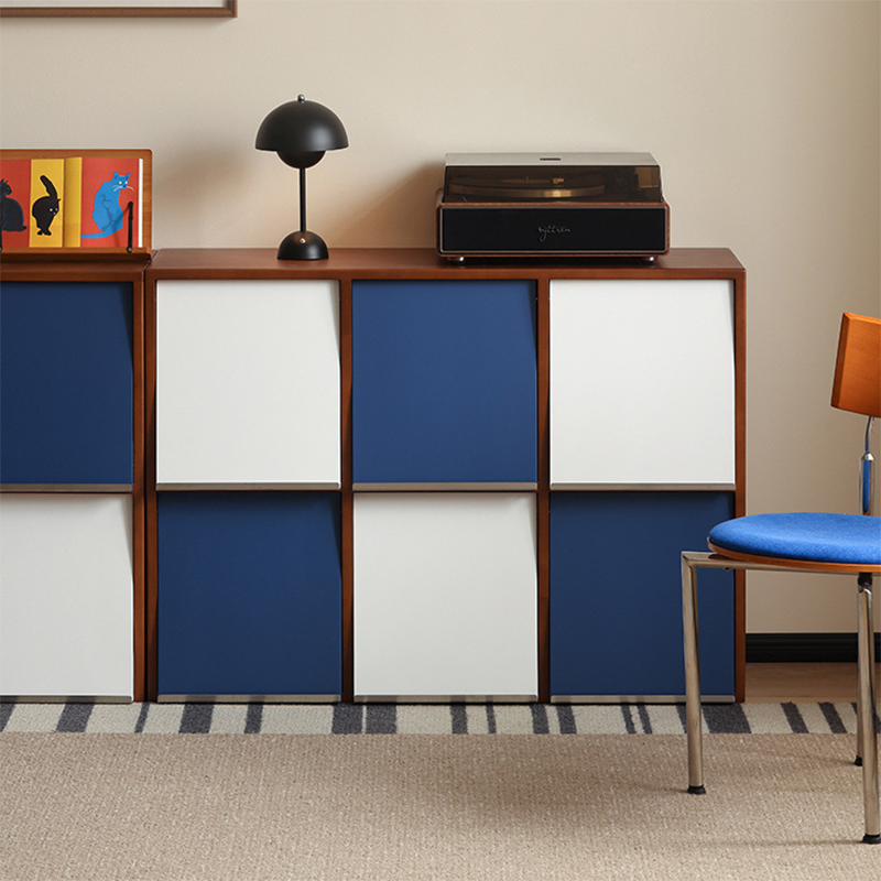 This Traditional French storage cabinet combines solid rubber wood and stainless steel for long-lasting durability, featuring a square modular design with 4 or 6 storage compartments. Finished in blue, white, or brown, it uses mortise-and-tenon joinery for a tight, stable structure, making it an elegant and practical storage solution for the living room.