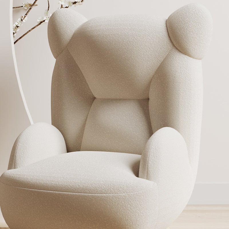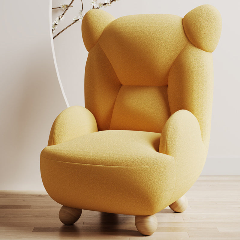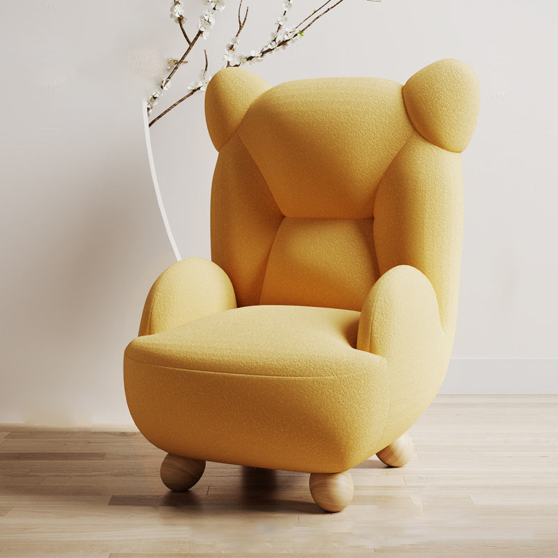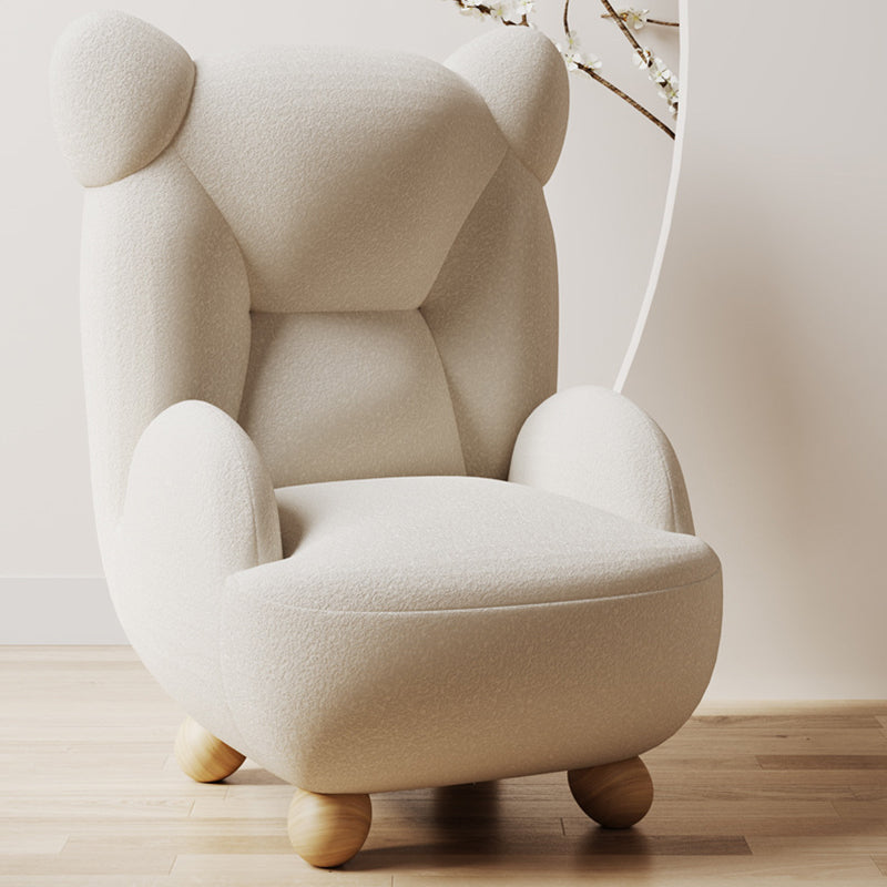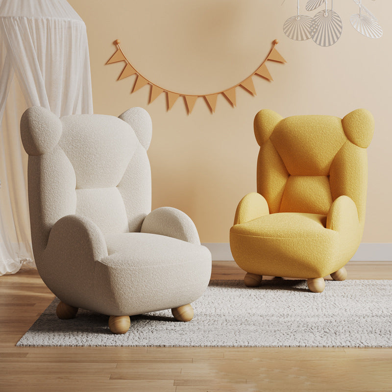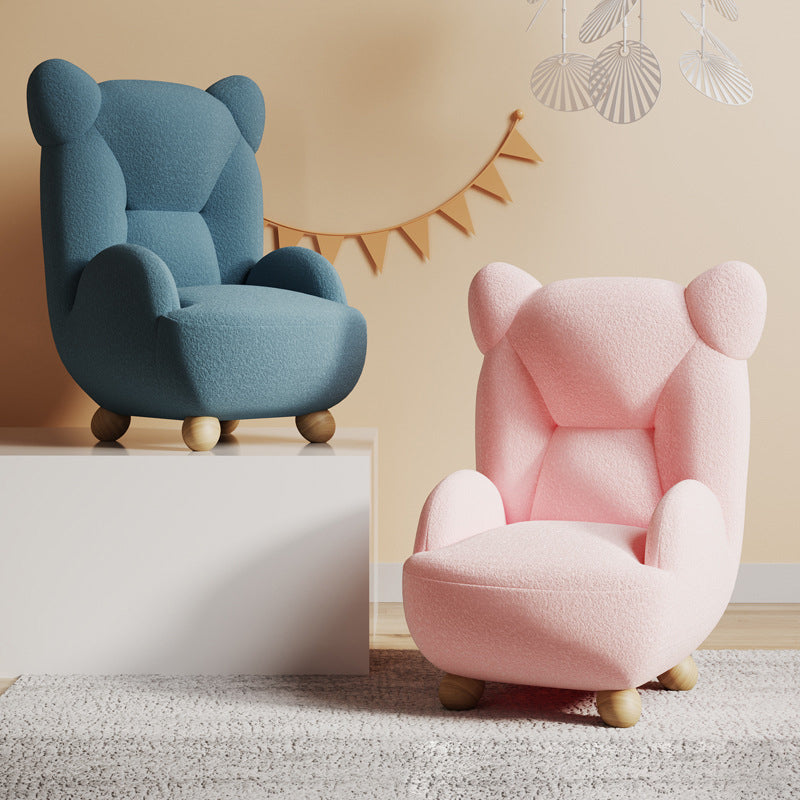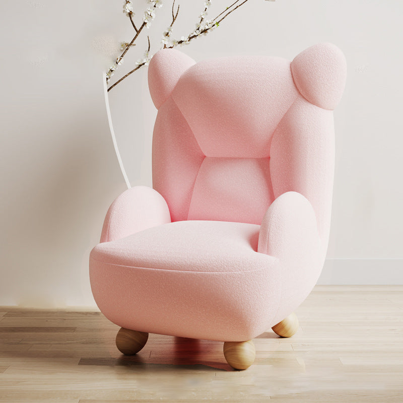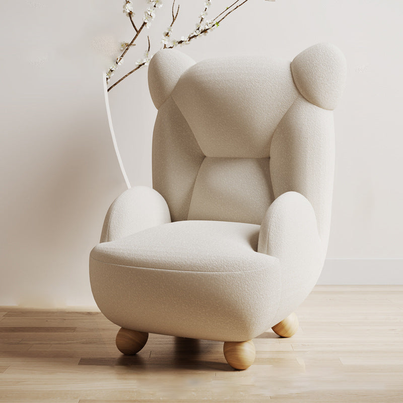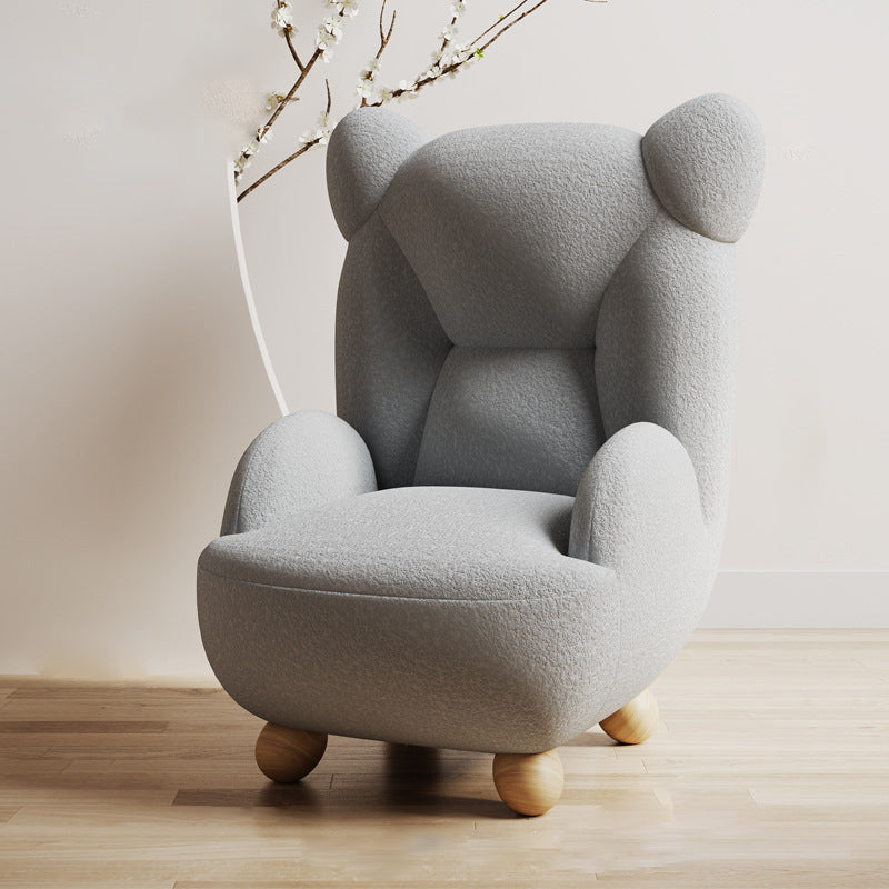Modern Minimalist Bear Solid Wood Lambswool Kids Recliner With Backrest Armrest For Living Room