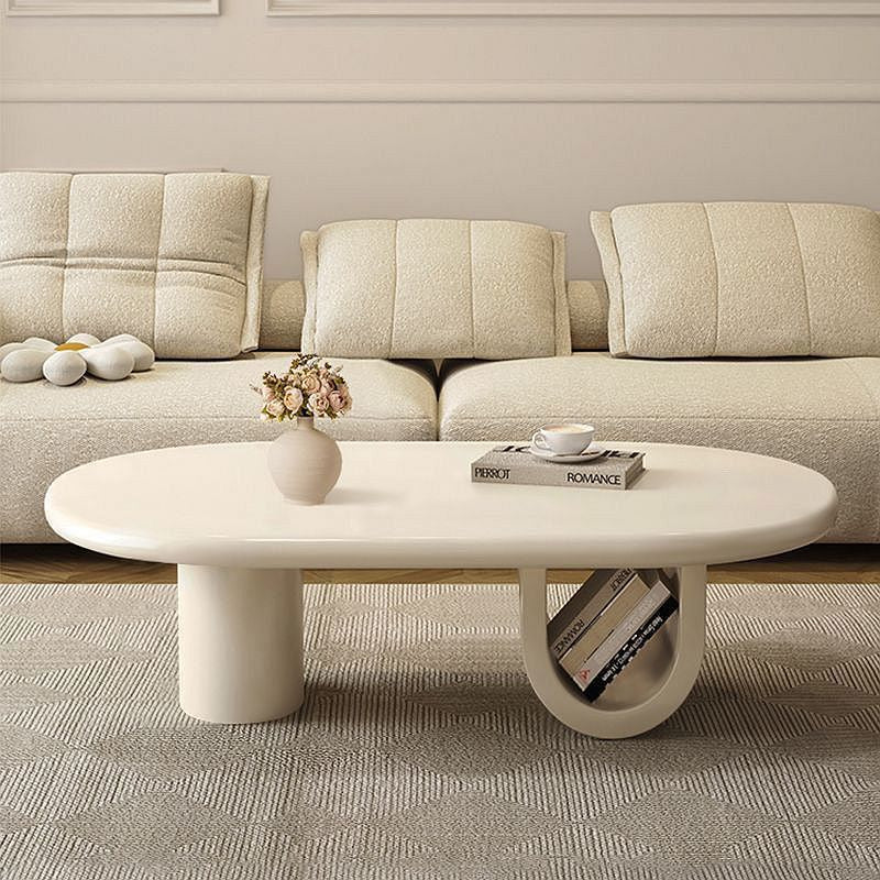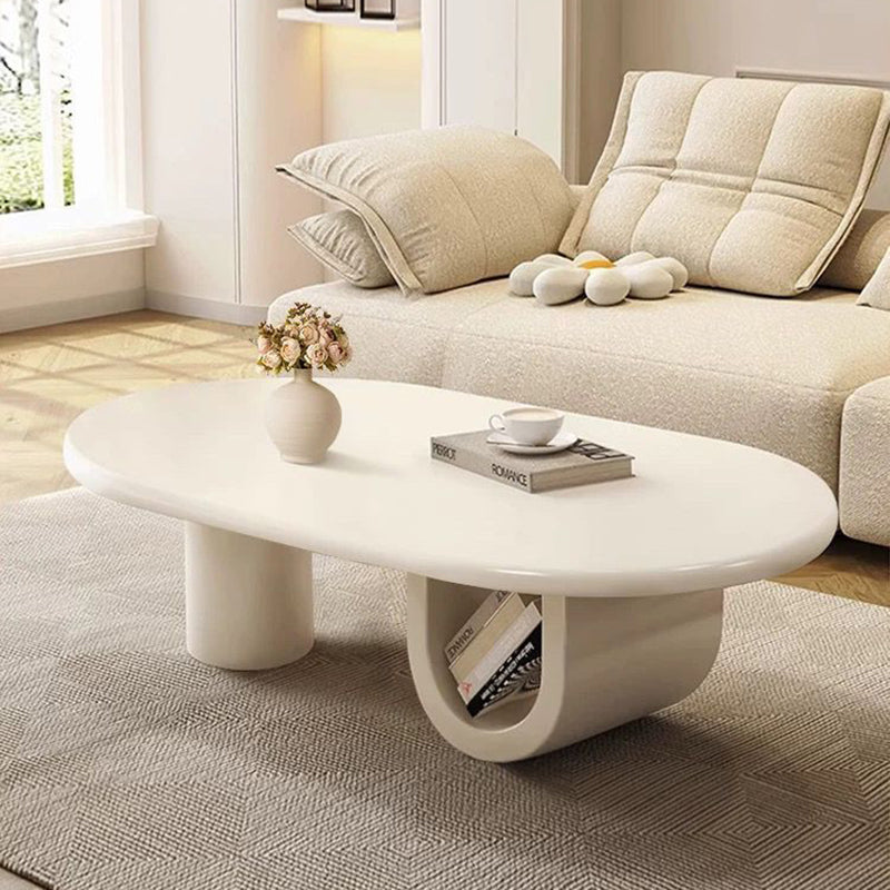 Modern Minimalist Ellipse E1 Eco-friendly High-Density Board PU Pipe U-shaped Leg Coffee Table 1-Cabinet For Living Room