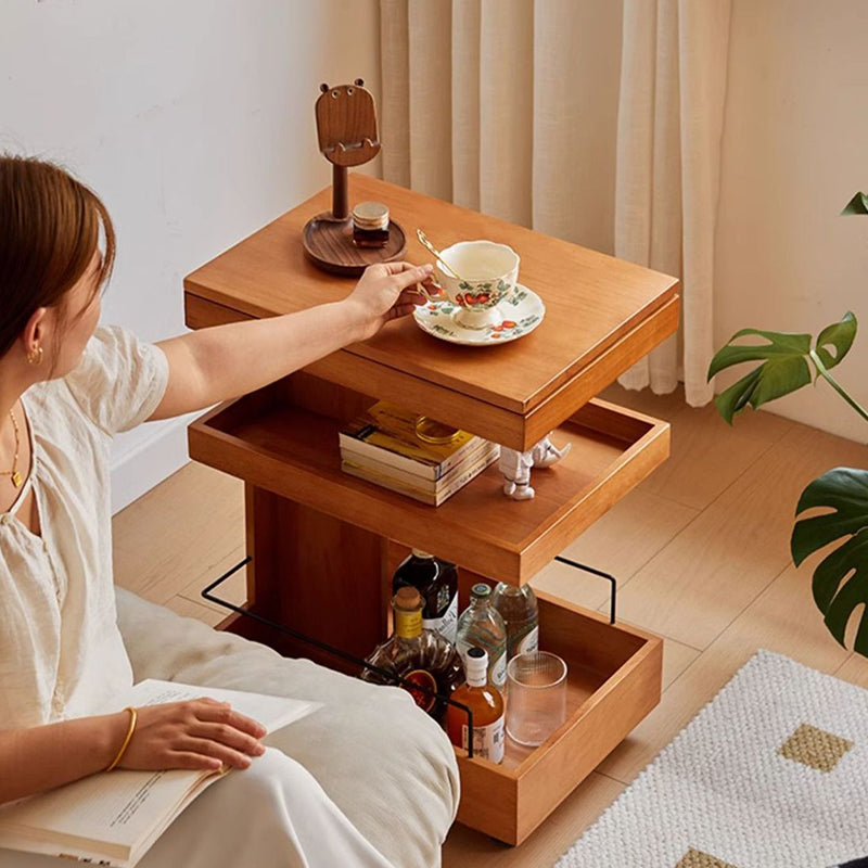 Modern Minimalist Rectangular Rubberwood Movable Side Table 1-Drawer For Living Room