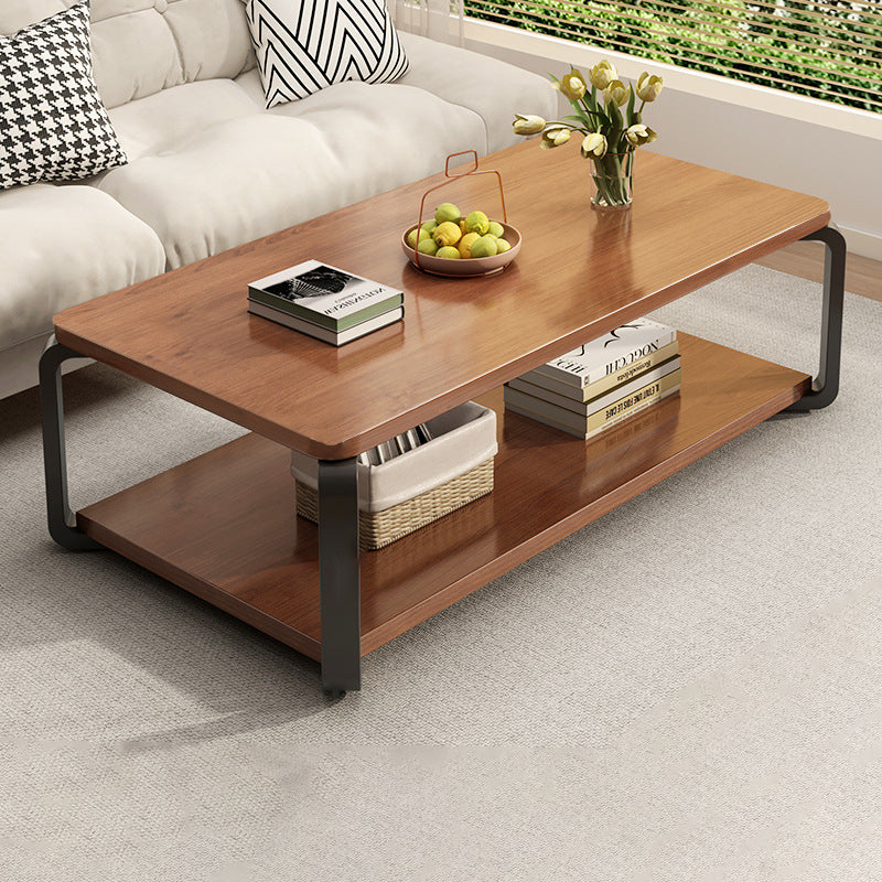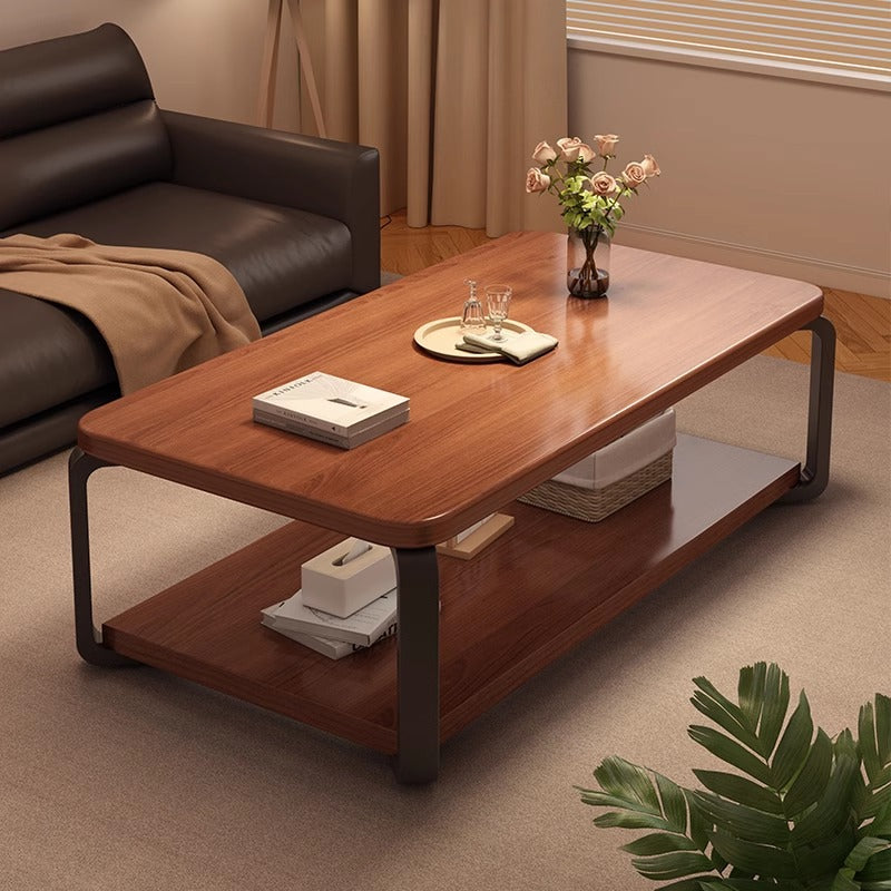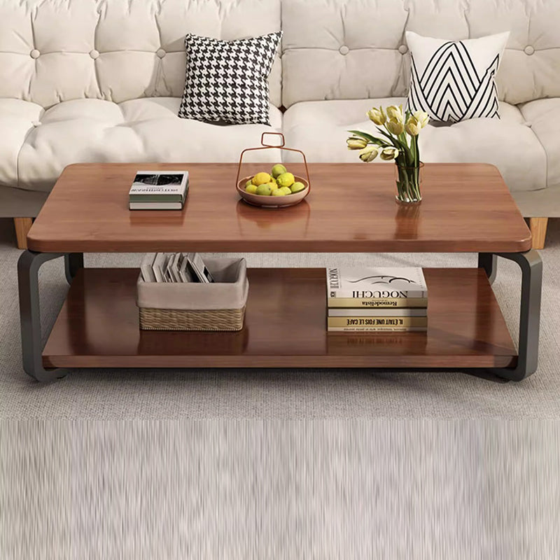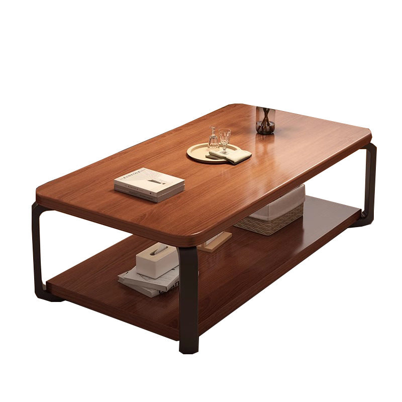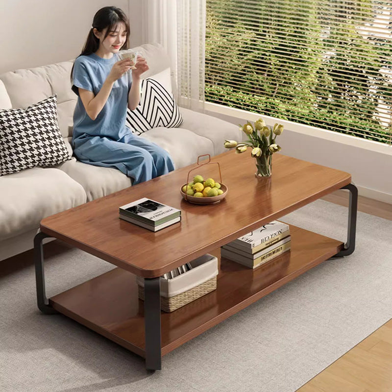 Modern Minimalist Rectangular Solid Wood Eco Board Carbon Steel Coffee Table 2-Tier For Living Room