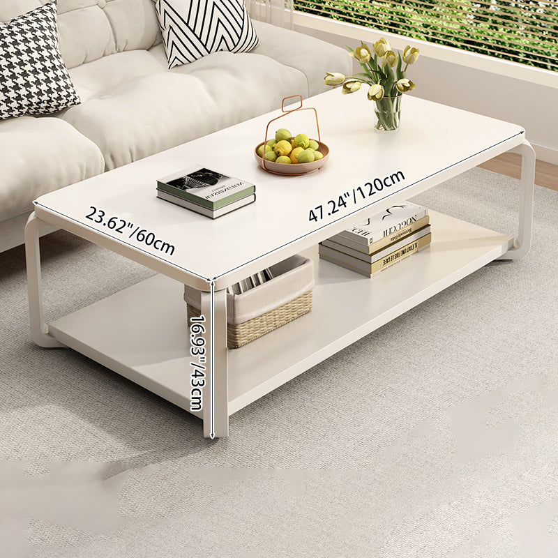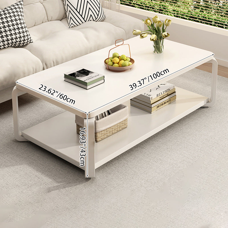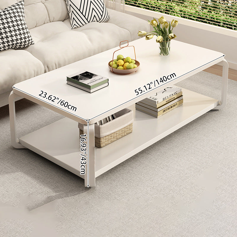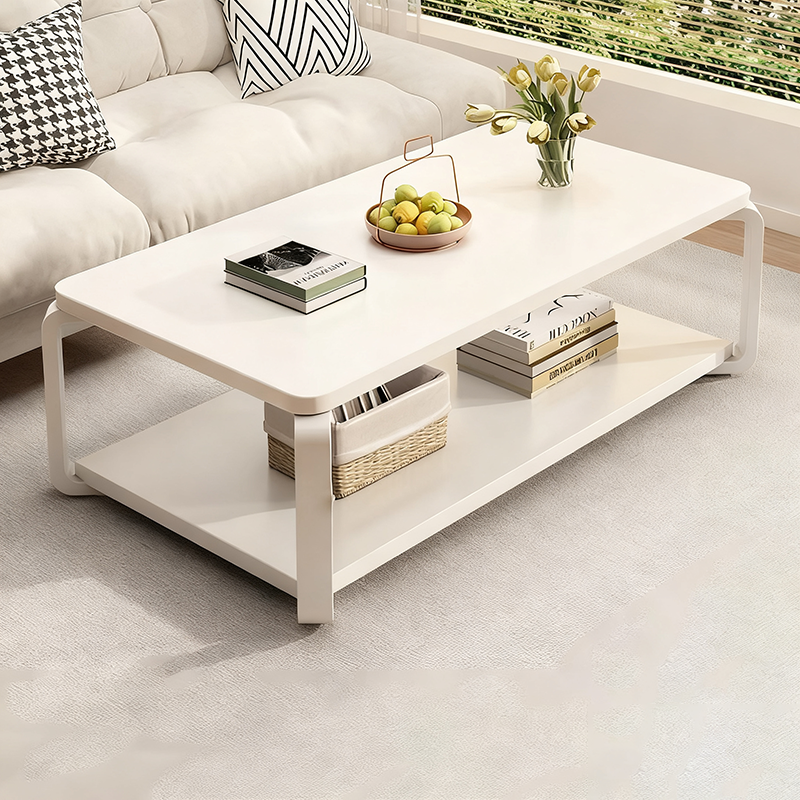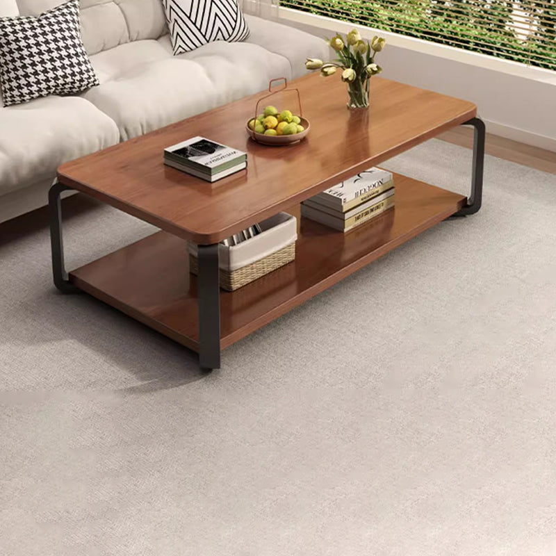 Modern Minimalist Rectangular Solid Wood Eco Board Carbon Steel Coffee Table 2-Tier For Living Room