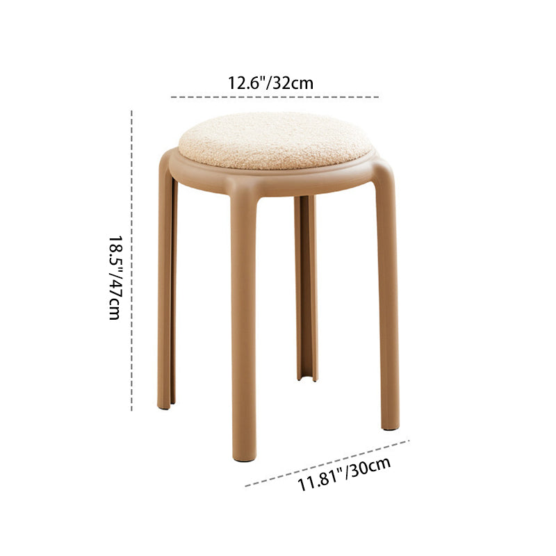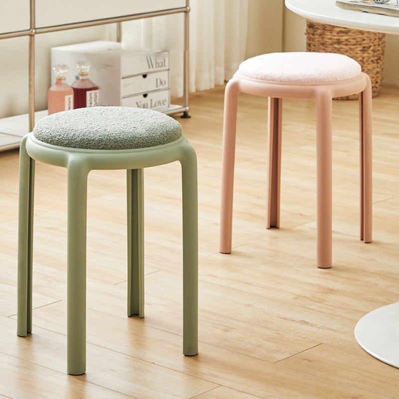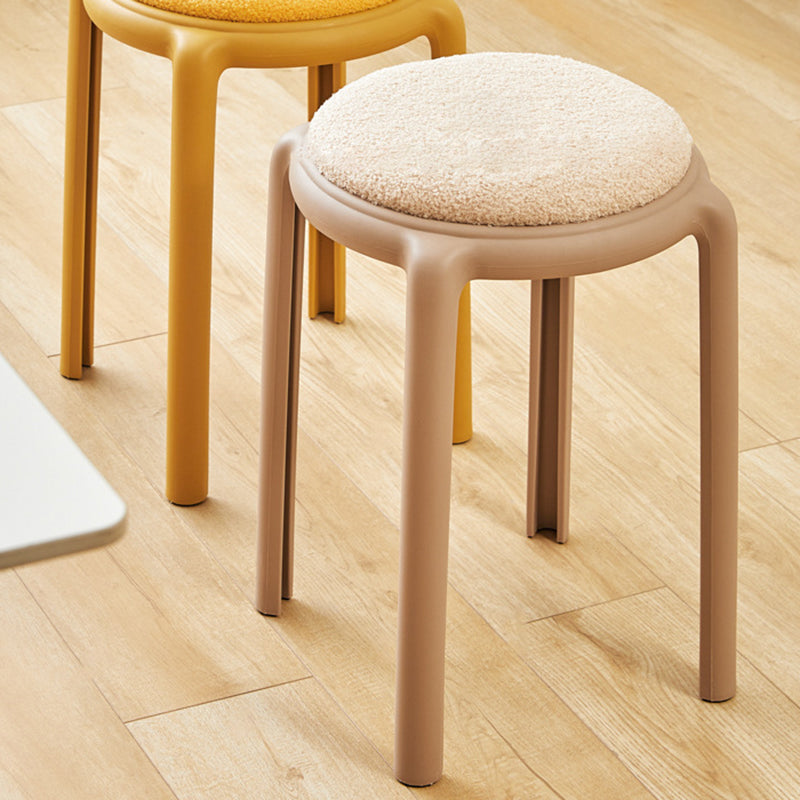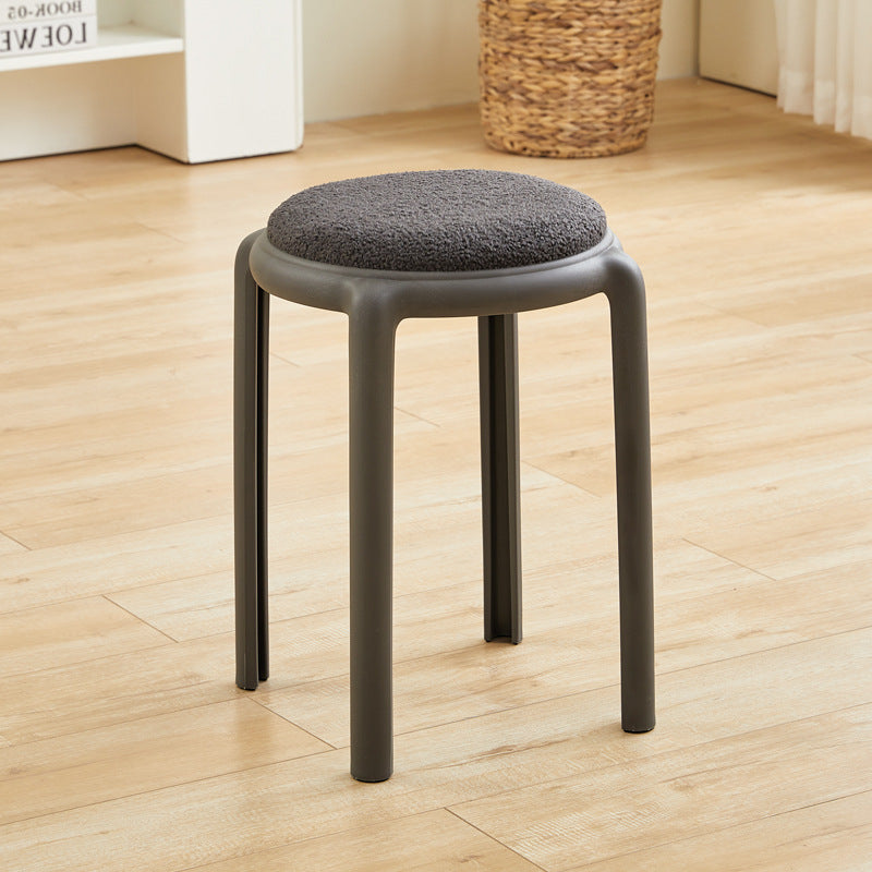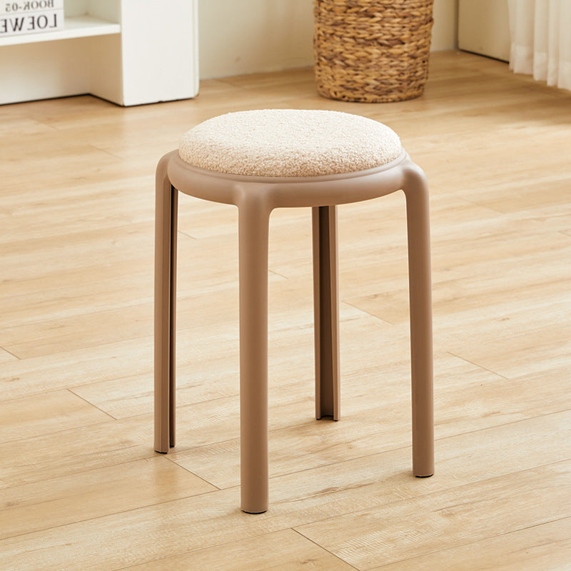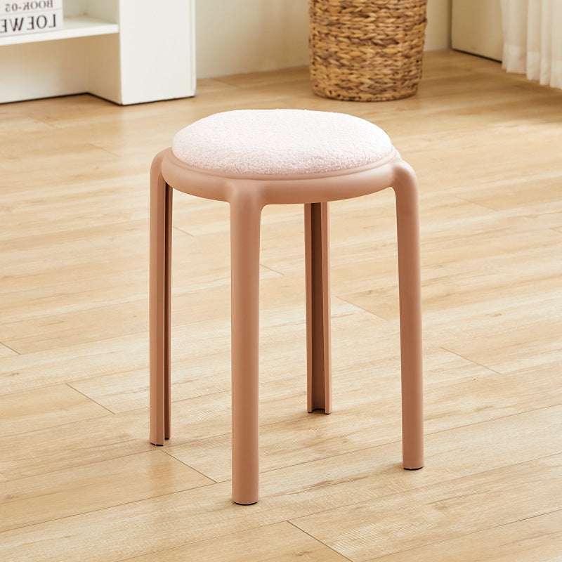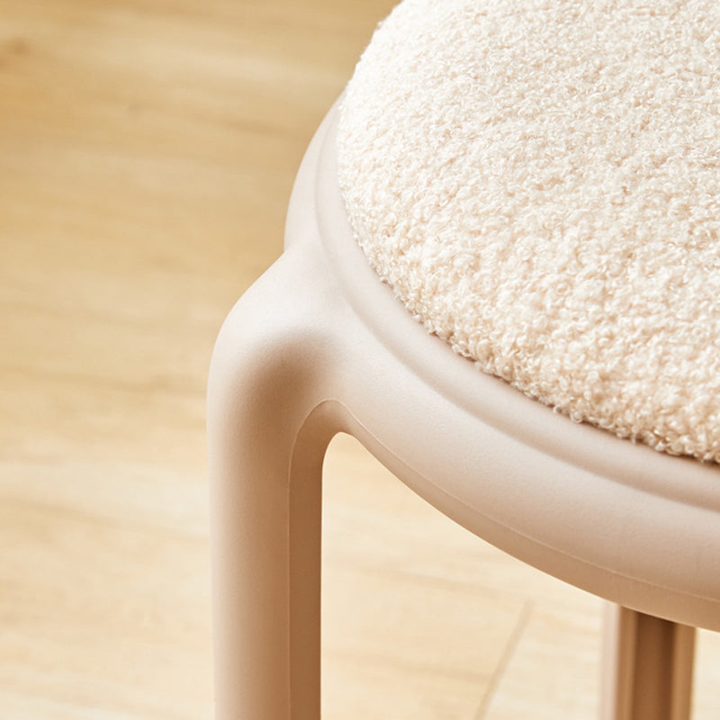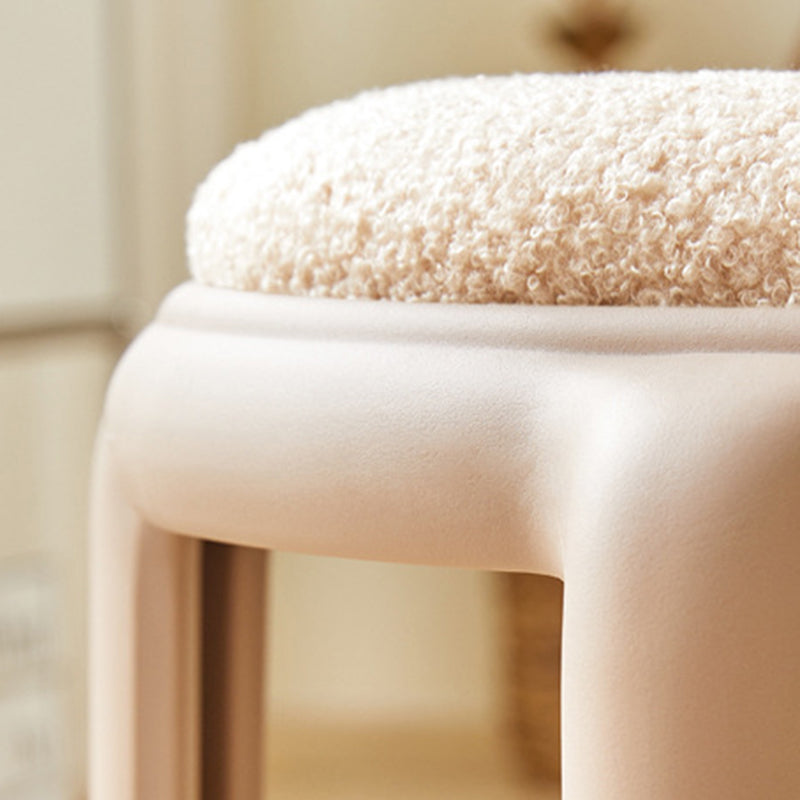 Modern Minimalist Round Faux Leather Teddy Fleece Plastic Low Stool For Living Room