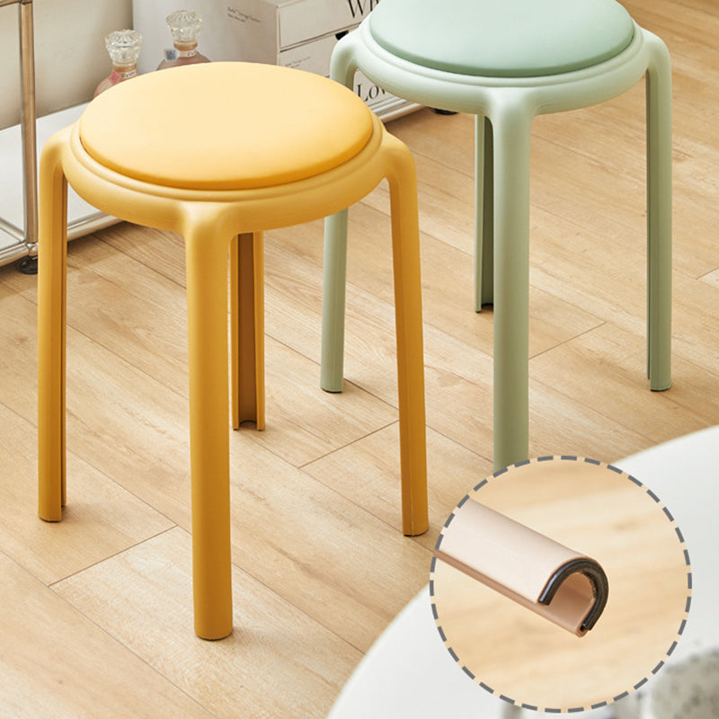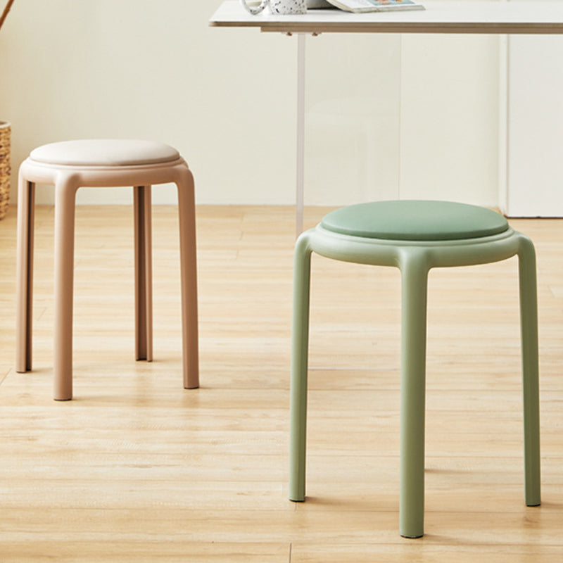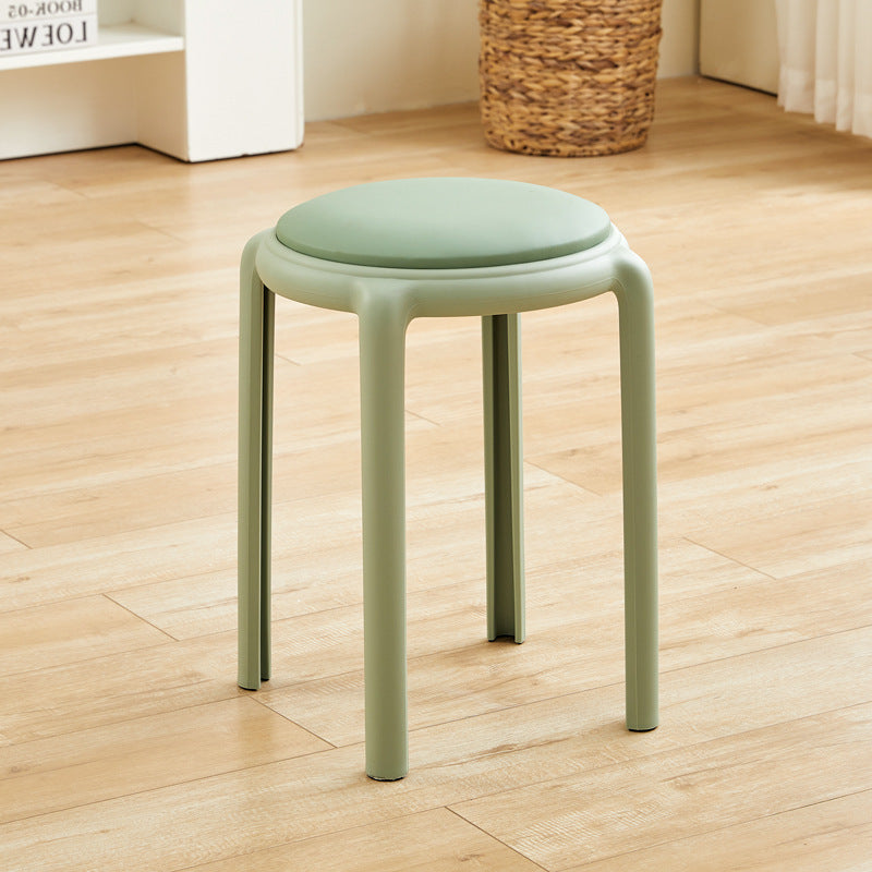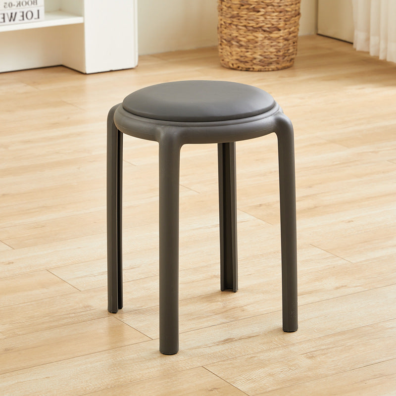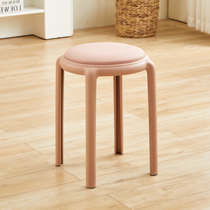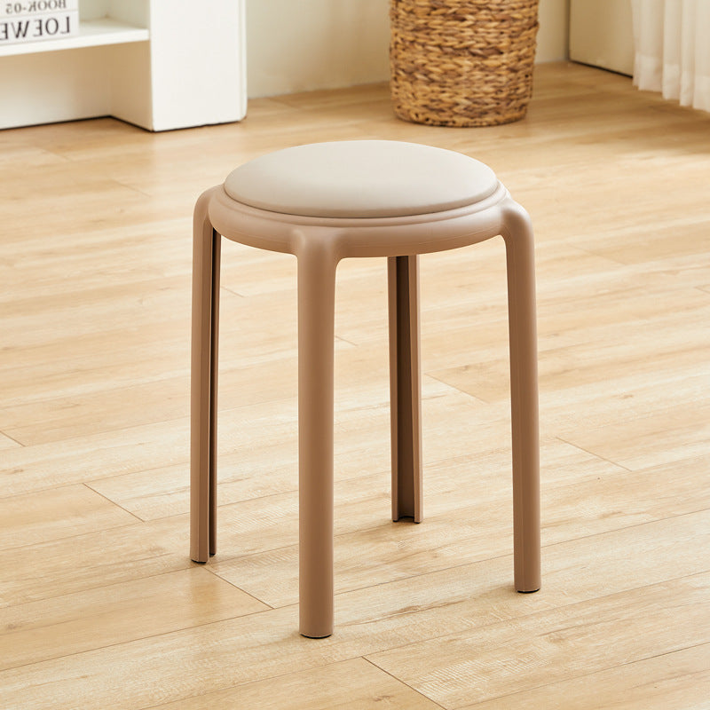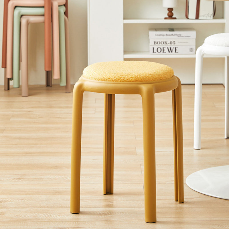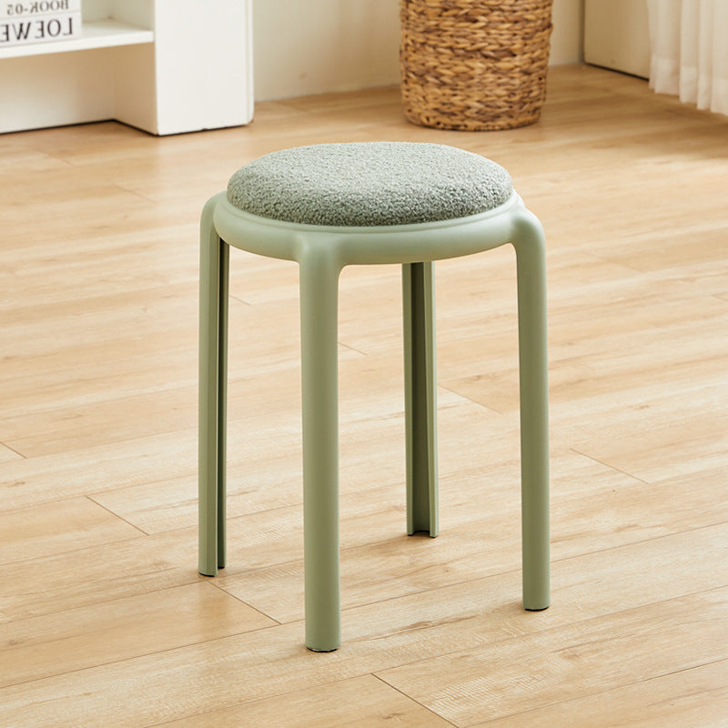 Modern Minimalist Round Faux Leather Teddy Fleece Plastic Low Stool For Living Room