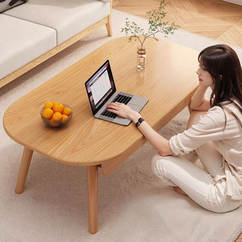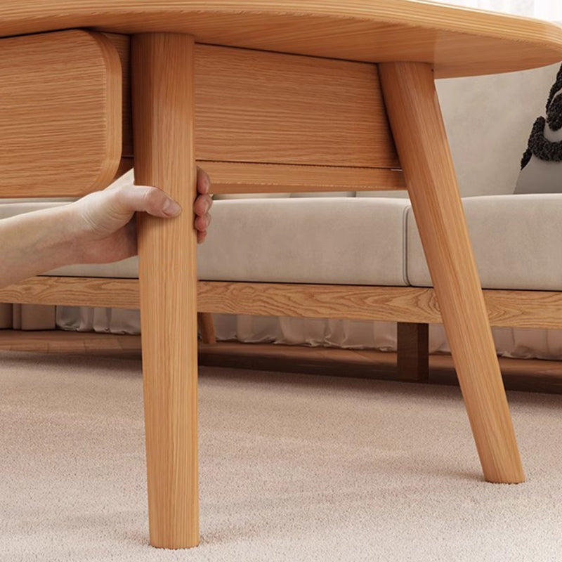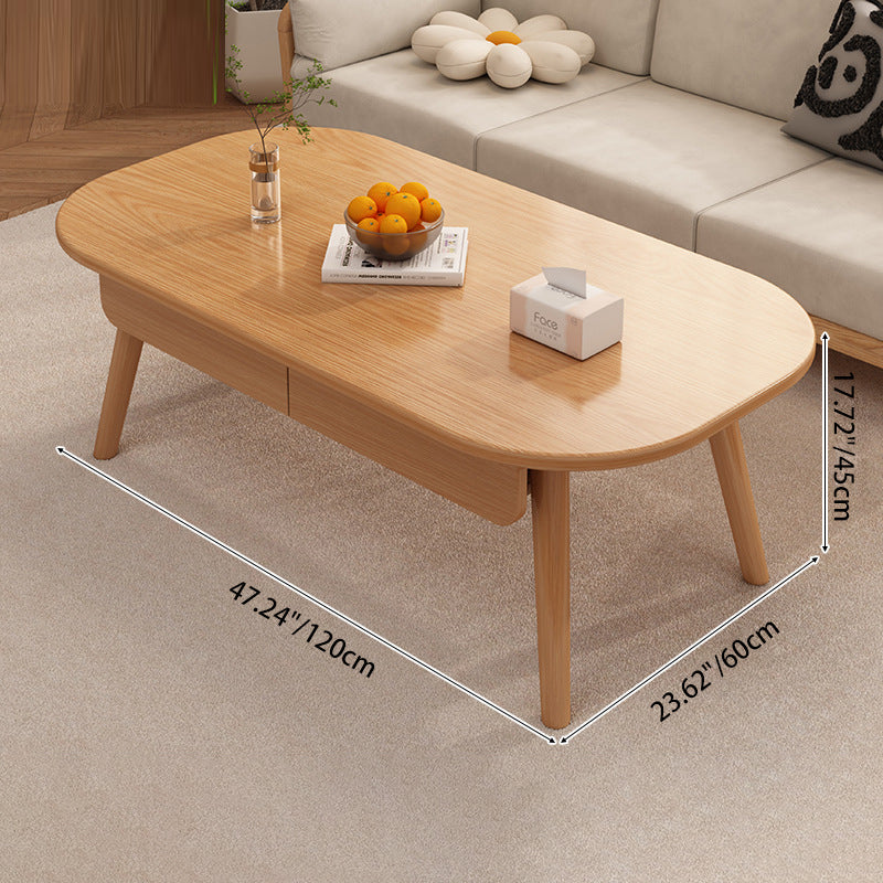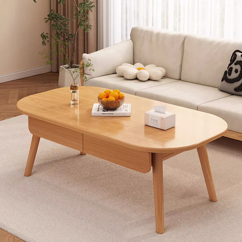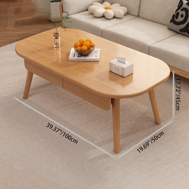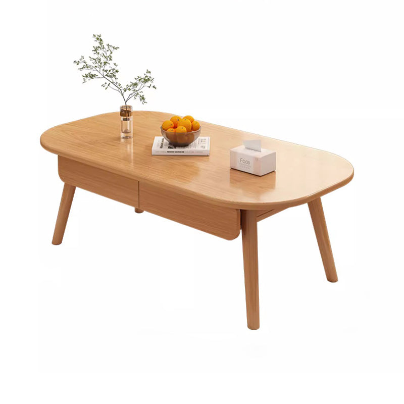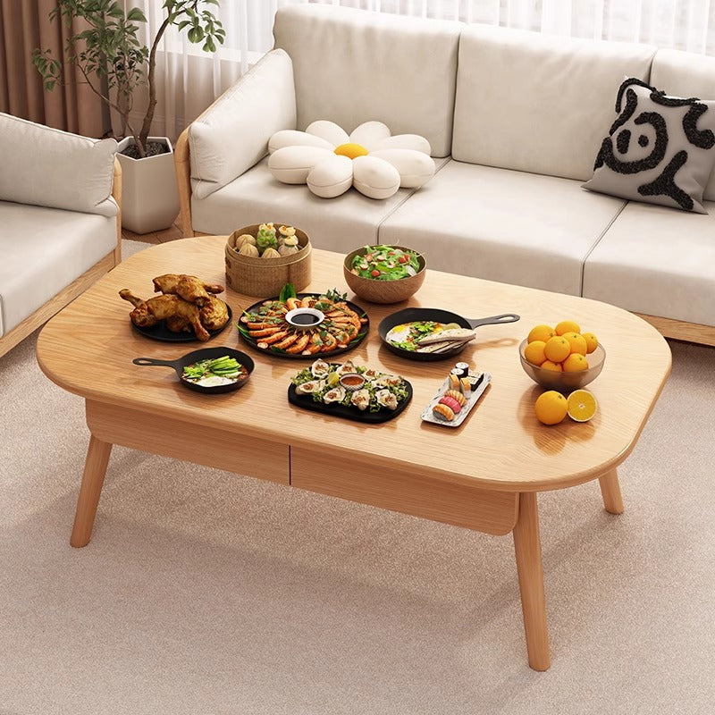 Modern Minimalist Rounded Rectangle Solid Wood Eco Board Coffee Table 2-Drawer For Living Room