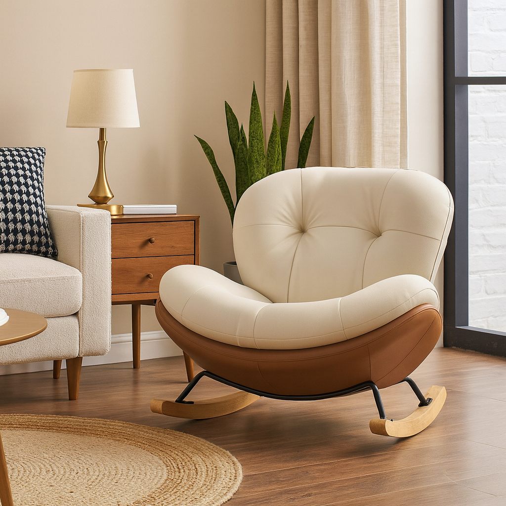 Contemporary Nordic Half-wrapped Design Velvet Fabric Cat-Scratch Resistant Leather Iron Solid Wood Plywood Rocking Chair With Backrest For Living Room