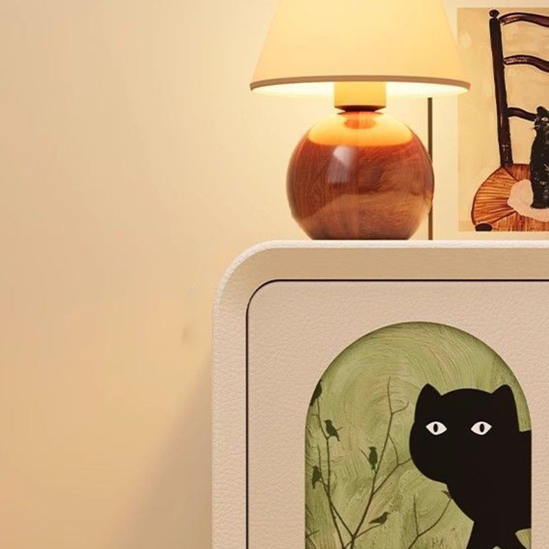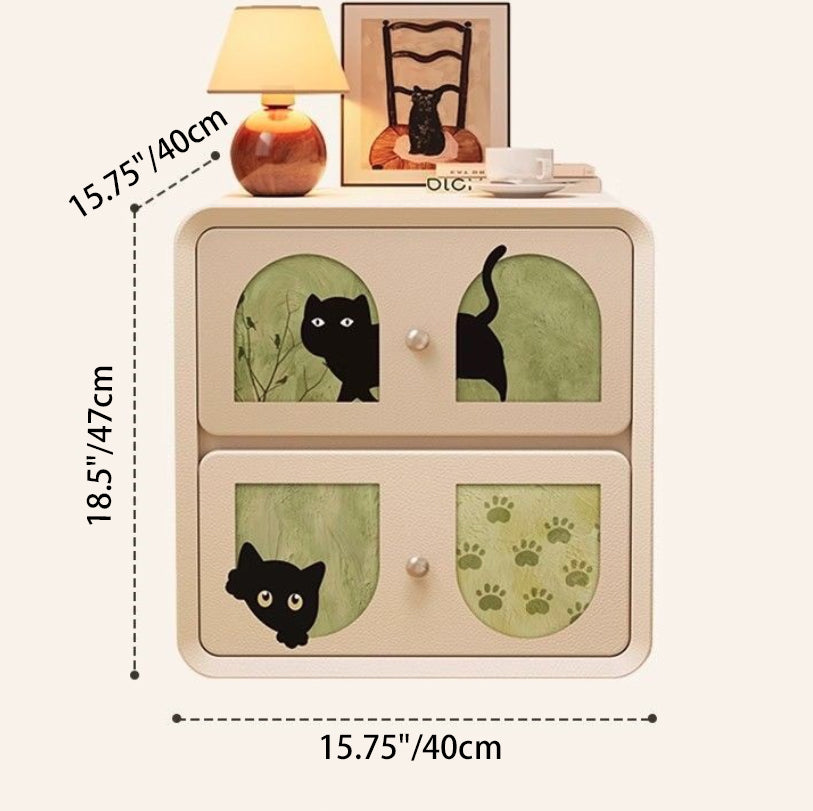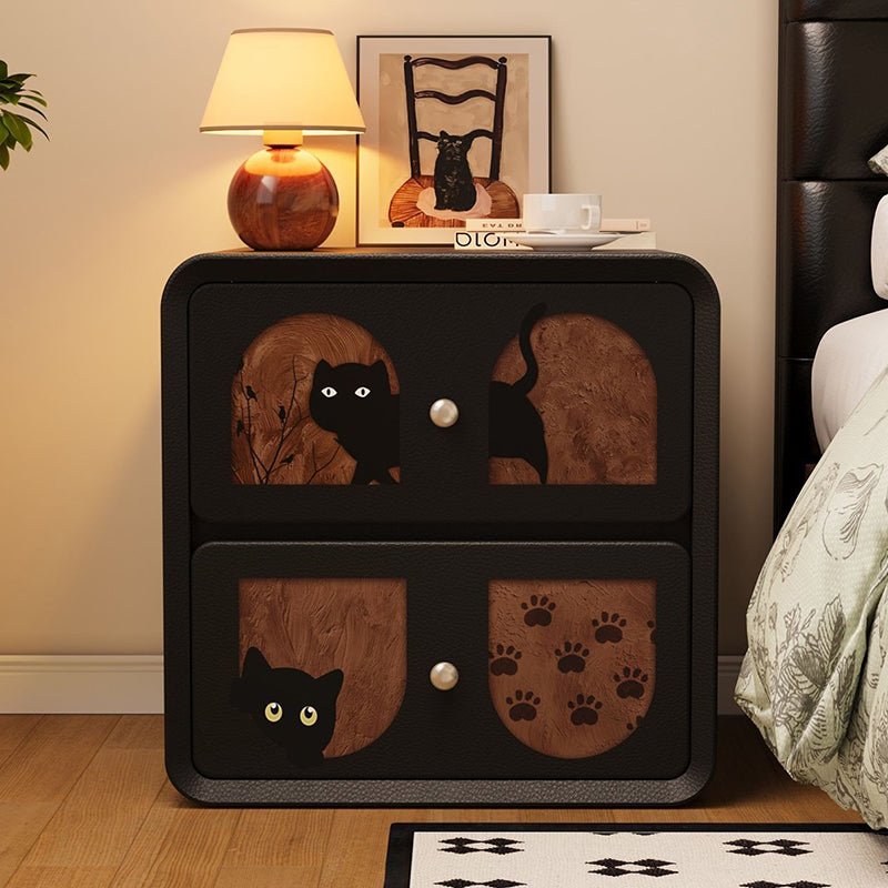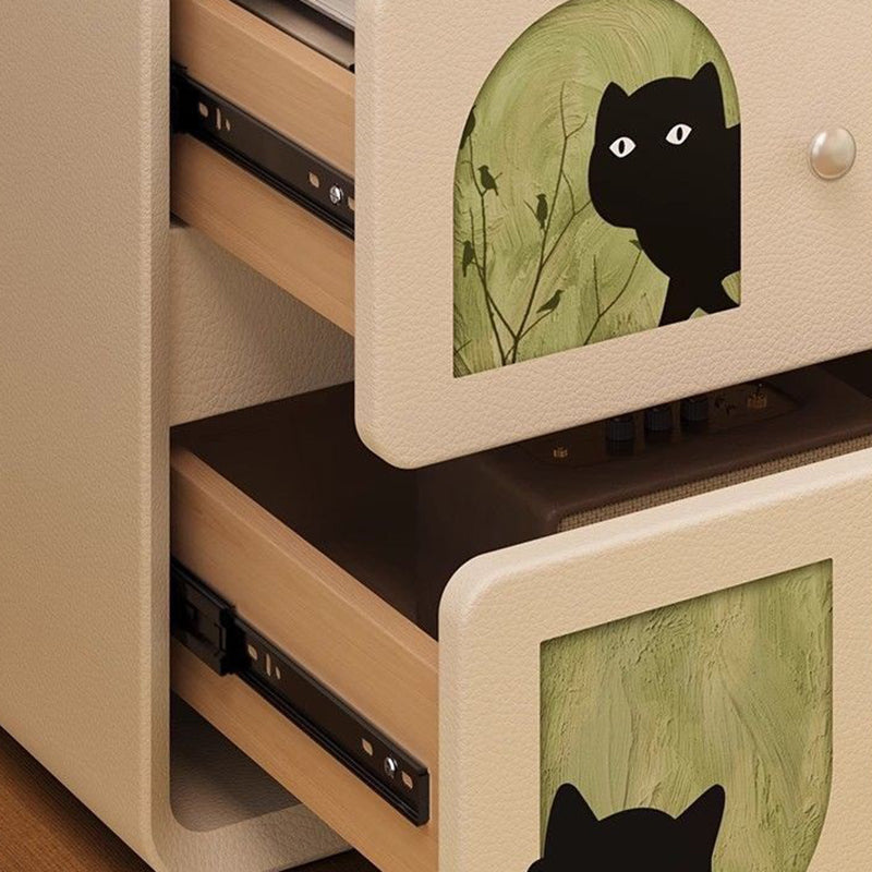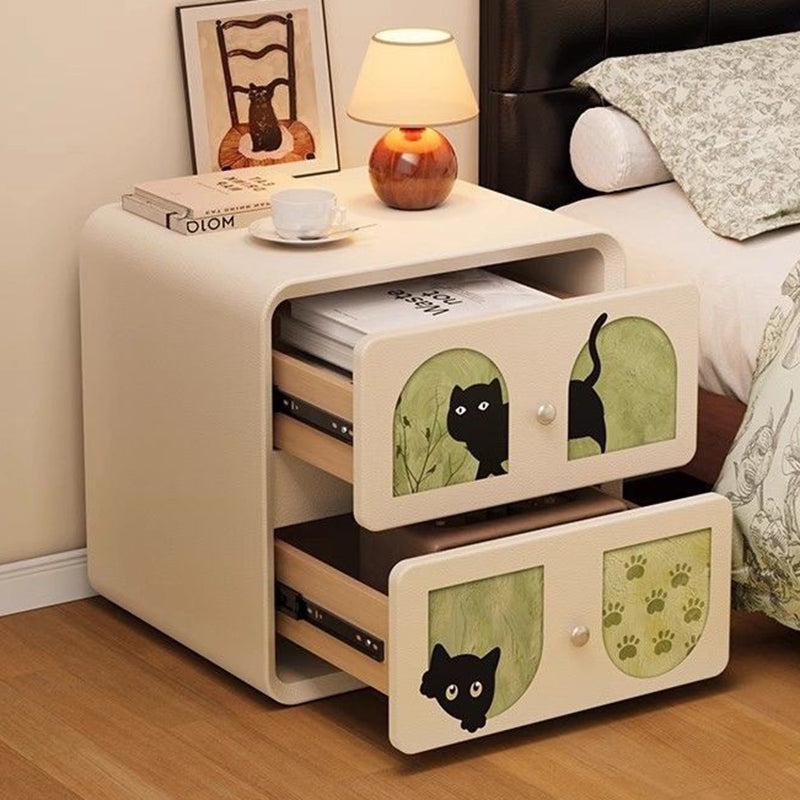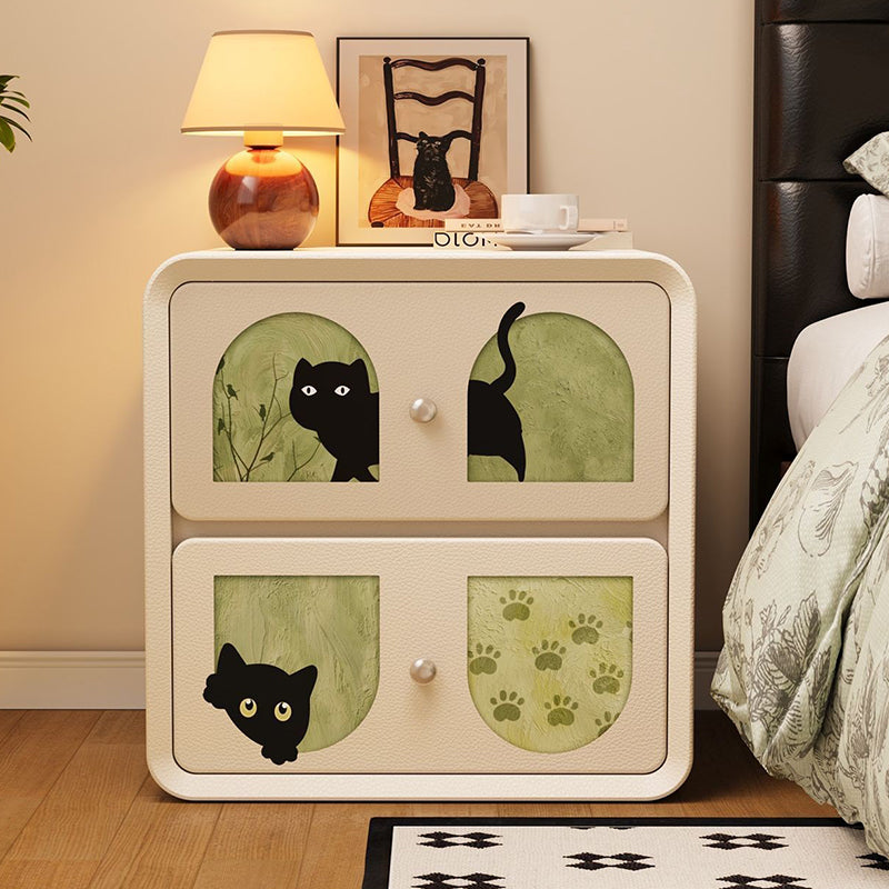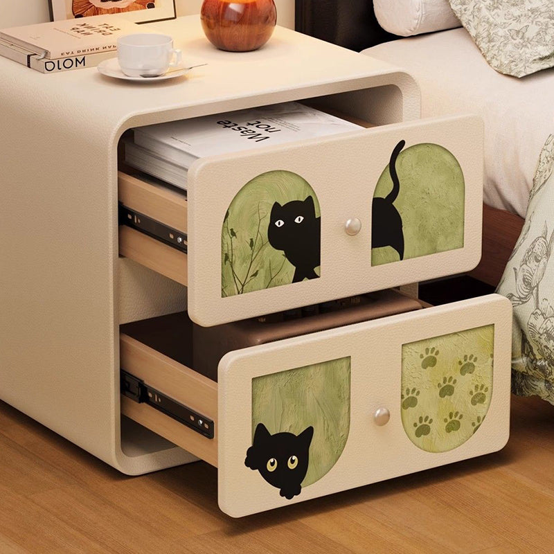 Modern Art Deco Cartoon Animals MDF Solid Wood Multi-Layer Board Cat Scratching Leather Nightstand 2-Drawer For Bedroom
