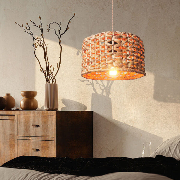 Moderne chinesische Rattan-Stroh-Seil-gewebte Trommel-1-Licht-Anhänger