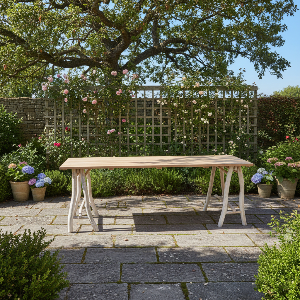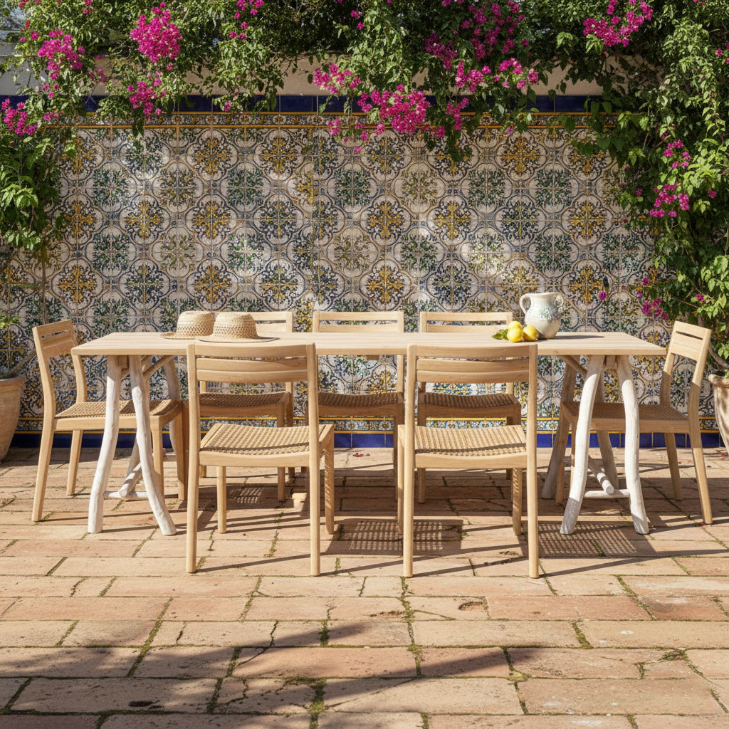 Crafted entirely from premium teak, this modern minimalist dining table boasts natural corrosion resistance, termite repellency, and exceptional moisture, water resistance. It stays intact no warping or cracking even with long-term outdoor use. Its sleek lines fit diverse spaces, serving as both a dining table and a stylish extension of outdoor living.