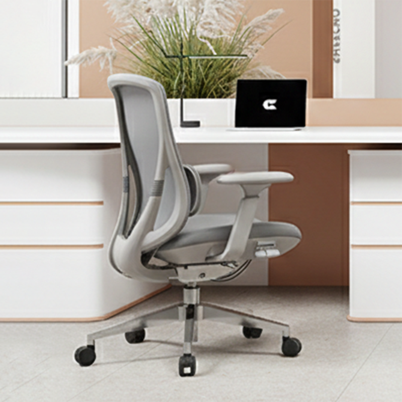 This modern minimalist ergonomic office chair balances core ergonomic design with practical comfort, engineered for daily office use and extended sitting, serving as an excellent home office desk chair and lumbar support office chair. The high-quality breathable mesh backrest delivers excellent compression and tear resistance, with flexible left-right swing for unrestricted sitting posture while maximizing airflow to keep the back cool and dry. Core seating features a front-mounted adaptive elastic lumbar pillow crafted from ultra-soft sponge, supporting height adjustment, 360° rotation and left-right swing to perfectly contour the waist curve, effectively dispersing pressure and relieving sitting fatigue. Equipped with 4D flexible armrests featuring comfortable PU material, offering front-back, left-right, rotation and height adjustments to accommodate various usage habits, providing stable arm support. The seat adopts an all-plastic integrated structure filled with high-resilience foam for long-lasting elasticity and deformation resistance, with forward-backward sliding to reduce thigh pressure and enhance overall comfort. The cable-controlled adaptive base supports multi-position locking, with smooth and silent operation, passing high-intensity durability tests for long-term reliability. The entire chair is fitted with safety-certified gas lift and high-strength aluminum alloy base for exceptional load-bearing capacity, paired with silent smooth casters for effortless and smooth movement, fully meeting the demands of efficient office work.