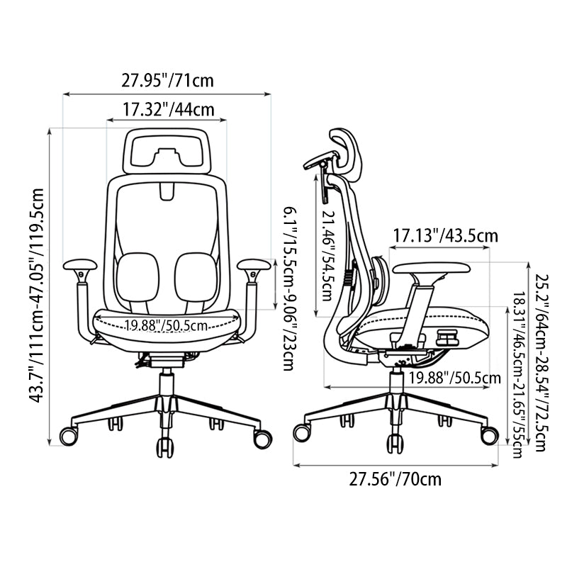 | Seat Height | 18.31"-21.65"/46.5-55cm |