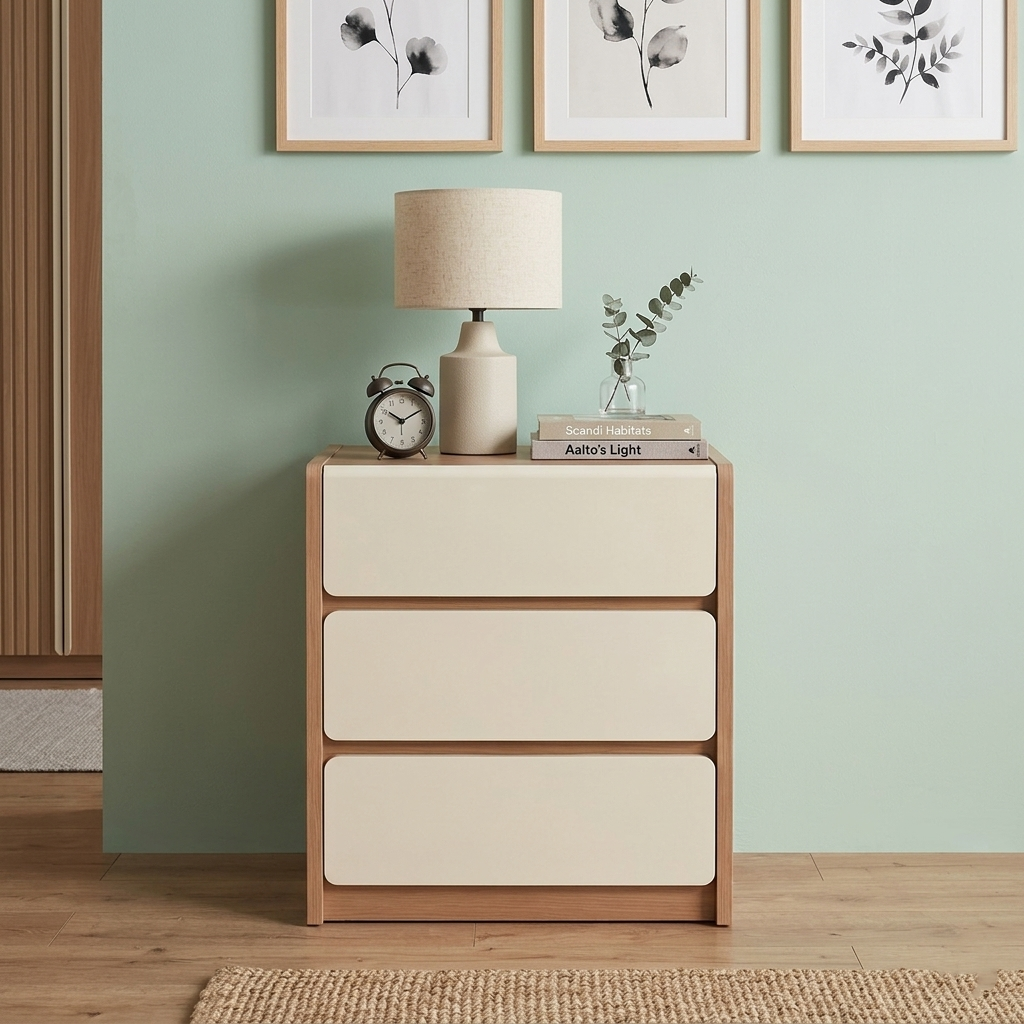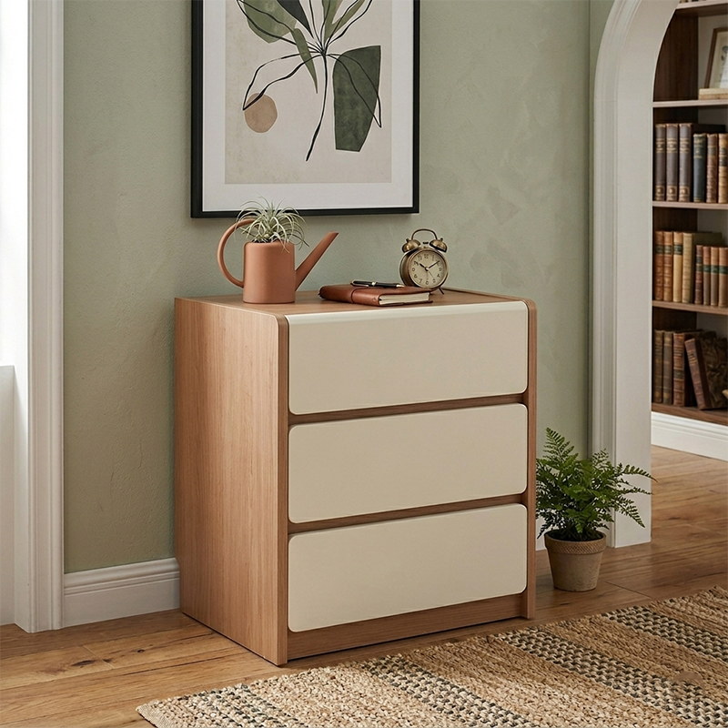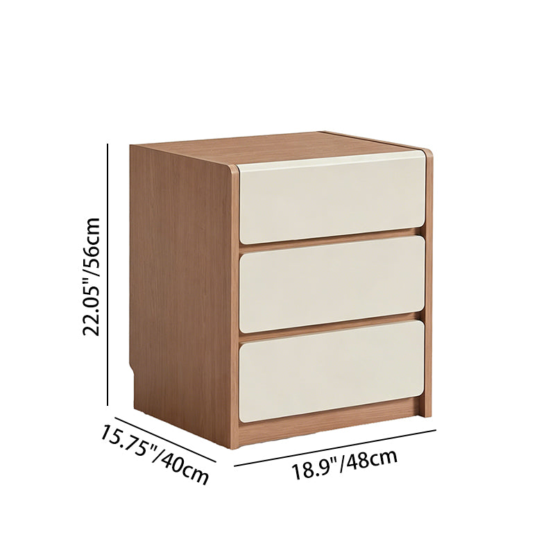 Crafted in traditional Rustic style, this 3-drawer nightstand blends natural rustic texture with modern practicality through a striking two-tone design. Built with a E0 Grade MDF frame for rock-solid stability and strong load-bearing capacity, the surface features an authentic wood grain finish that delivers a warm, tactile feel and exceptional scratch resistance for daily durability. E0 Grade MDF drawers offer outstanding moisture resistance and deformation resistance, ensuring long-lasting reliability for daily use. Featuring a timeless wood and cream two-tone color scheme, this piece seamlessly complements rustic, farmhouse, Japanese and cozy bedroom decors, with fully rounded edges to eliminate sharp corners for safe daily use. The spacious 3-drawer layout provides organized storage for bedtime books, skincare products and personal essentials, keeping your bedside clutter-free, while its compact footprint makes it a versatile piece that functions flawlessly as a bedroom bedside table, a small-space side table or a storage chest, redefining storage aesthetics with rustic design and infusing daily life with natural, down-to-earth charm.