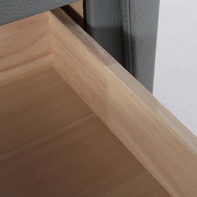 This contemporary Nordic-designed bedside table features an E1 eco-friendly board frame, solid wood drawers for organizing daily clutter, iron legs for support, and faux leather upholstery with stitching craftsmanship. It condenses Nordic texture in its minimalist lines, serving as a considerate companion for bedroom storage and a Nordic-style business card for the space, infusing modern calm and elegance into your home.