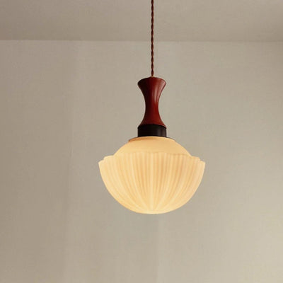 Zeitgenössisches Retro Kegelförmiges Kürbis Holz Glas 1 - Licht Pendelleuchte Für Schlafzimmer