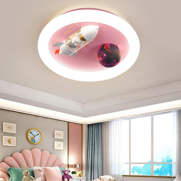 Moderne Cartoon-Raumschiff-Planet-LED-Deckenleuchte für Kinder