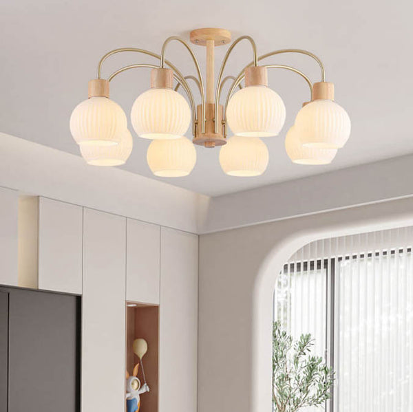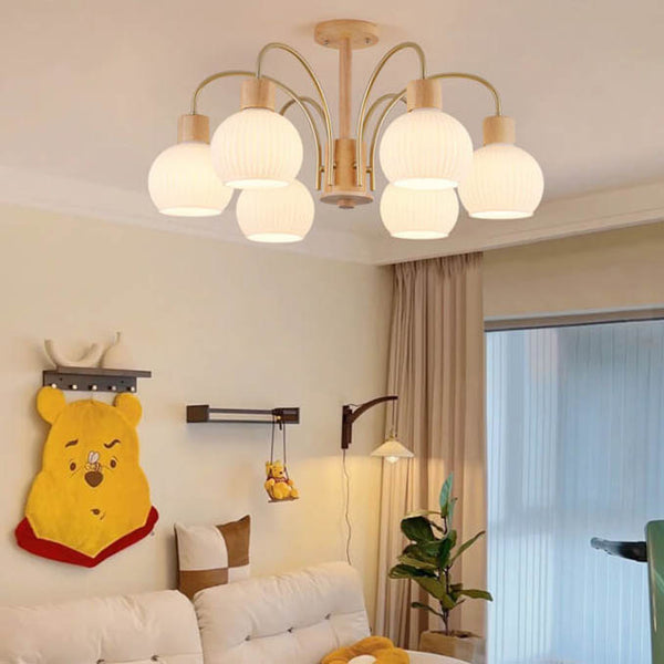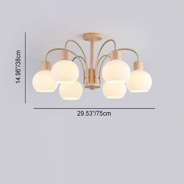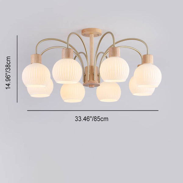 Moderne runde Creme-Laterne aus Eisen, massivem Holz und Glas 6/8 Licht Kronleuchter