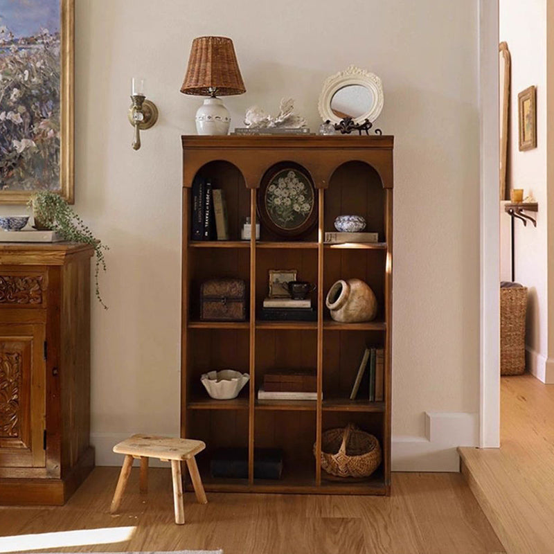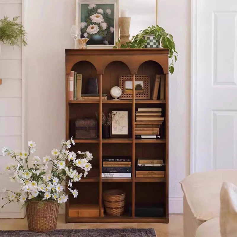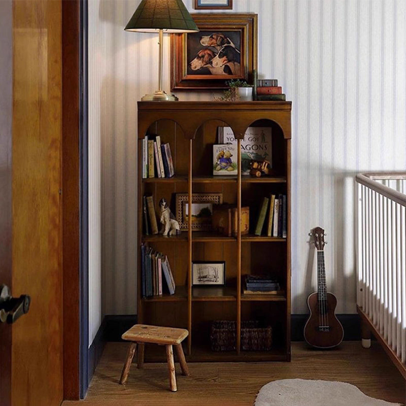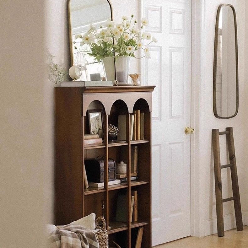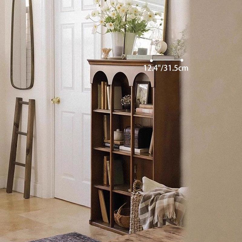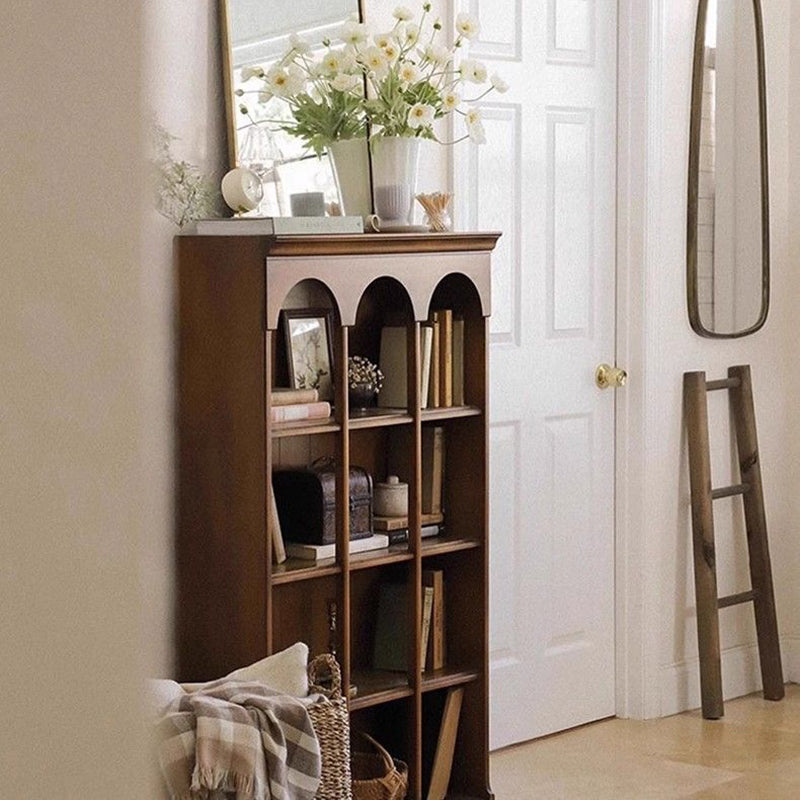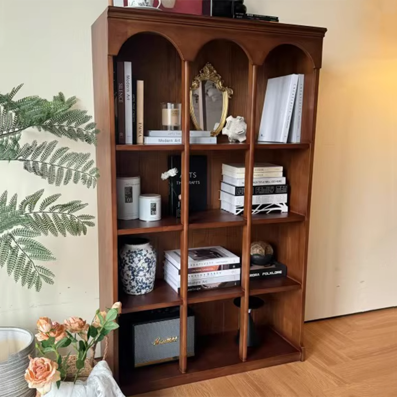 Designed in a contemporary Nordic style, this 4-tier storage shelf features a solid walnut wood frame combined with durable engineered wood panels for long-lasting stability. Finished in a warm walnut tone, it offers spacious open shelving for books and décor, making it an elegant storage solution for living rooms, bedrooms, or home offices.