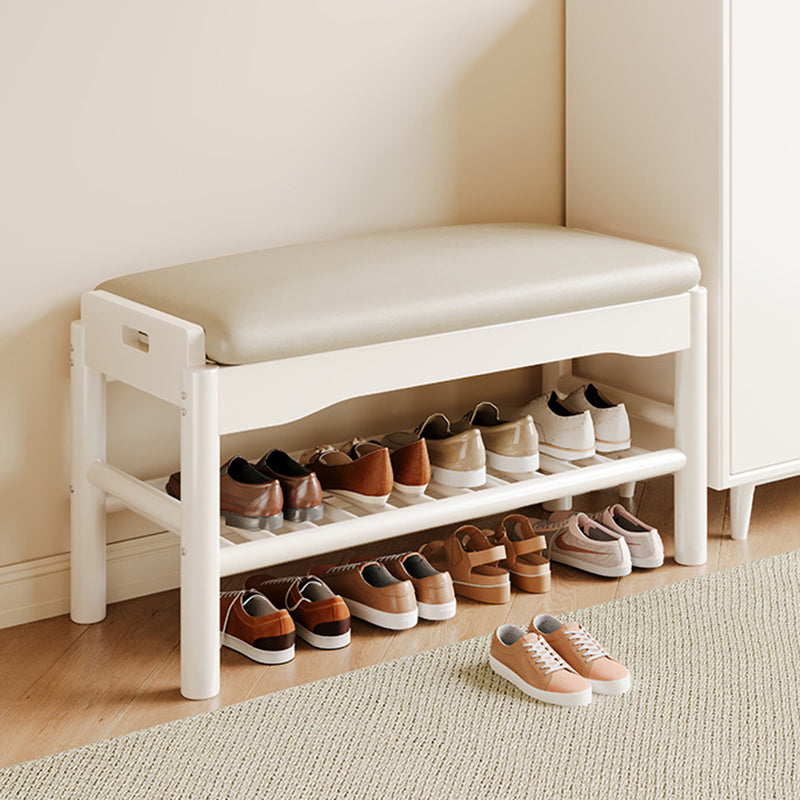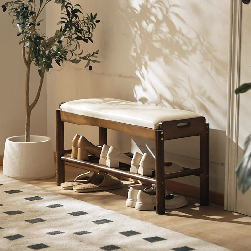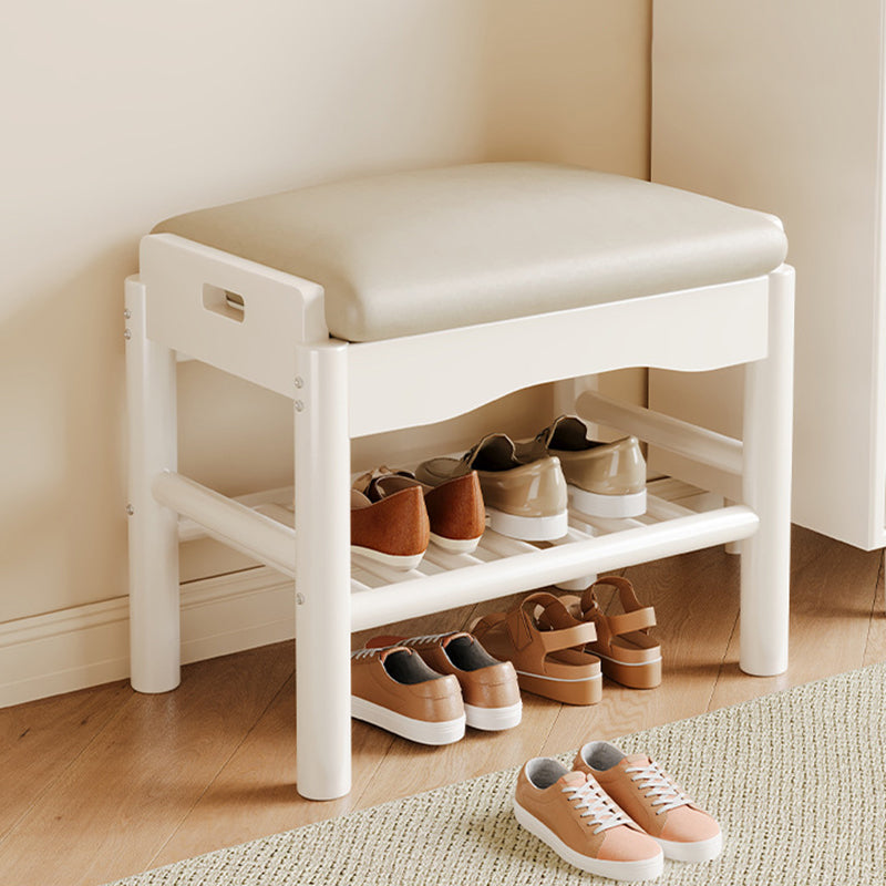 Modern Minimalist Rectangular Solid Wood PU Leather Sponge Footstool For Living Room