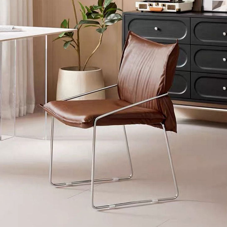 Modern Minimalist Rectangular Sponge Seat Cushion PU Leather Metal Dining Chair Backrest Armrest For Dining Room