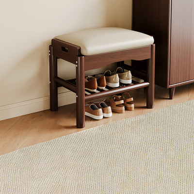 Modern Minimalist Rectangular Solid Wood PU Leather Sponge Footstool For Living Room