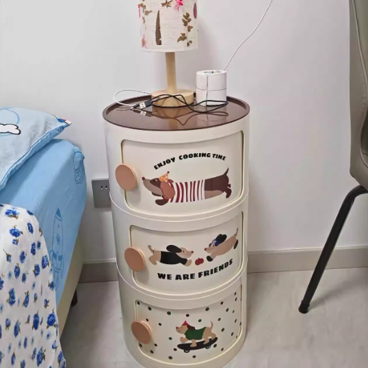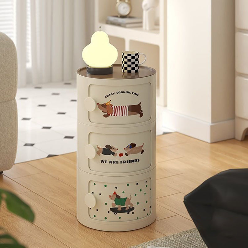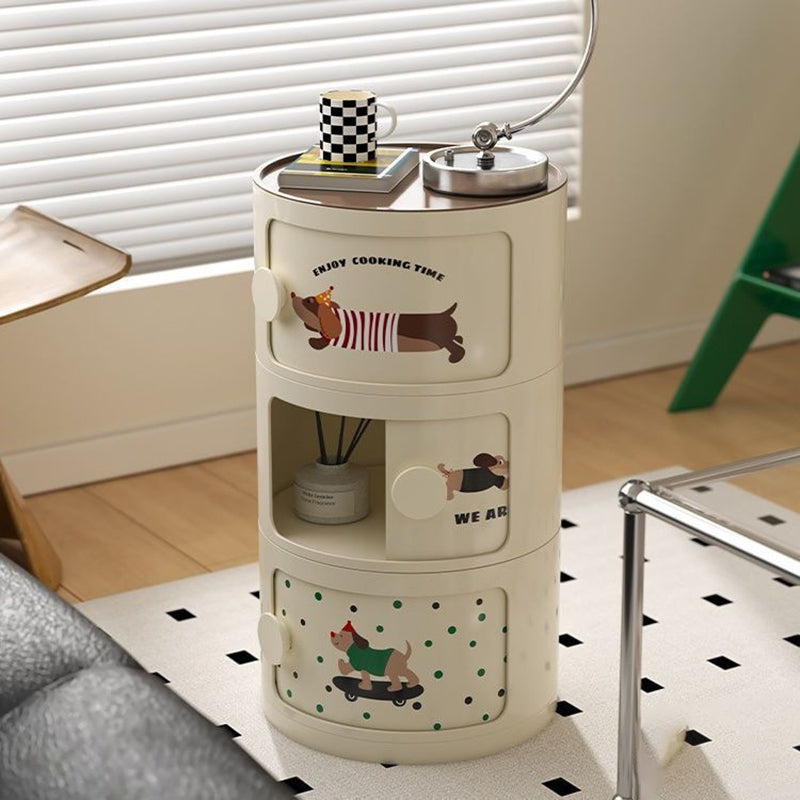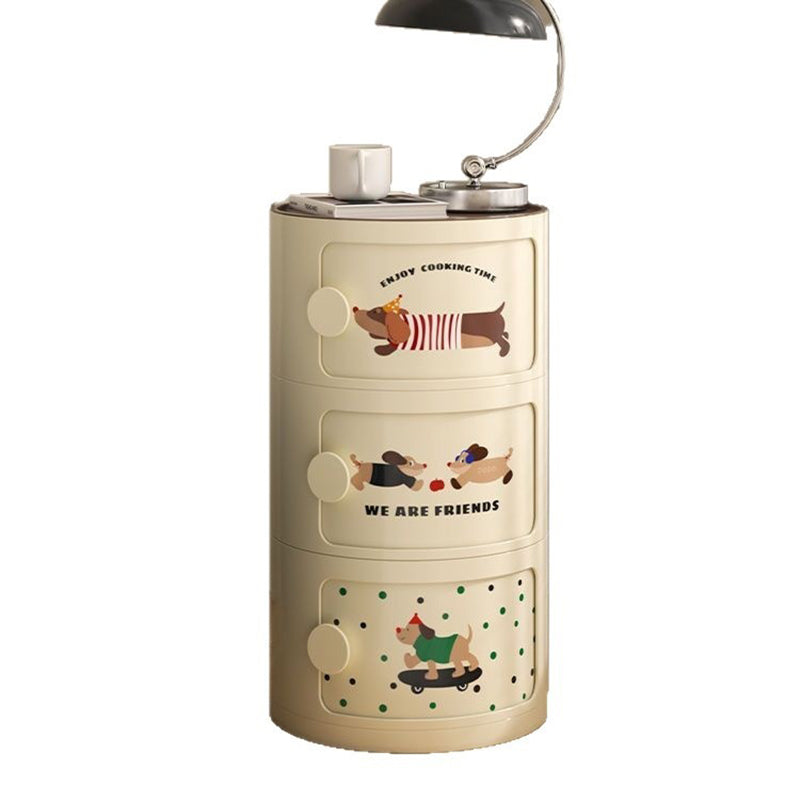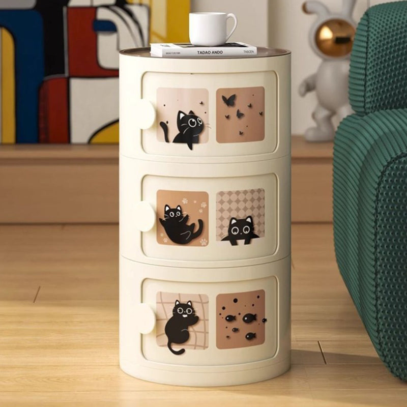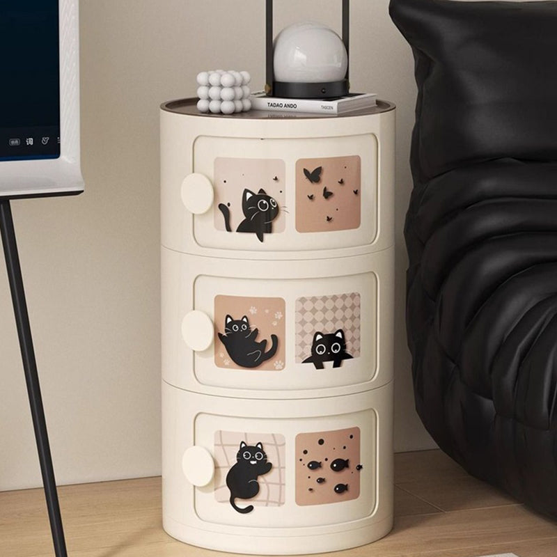 This contemporary creative kids nightstand features a round, animal-inspired design made from durable ABS, bringing a playful touch to bedroom storage. Designed with 2 or 3 functional tiers, smooth-sliding doors with easy-grip handles, and a recessed top to prevent items from falling, it’s available in cream and pink for a cheerful, modern look.