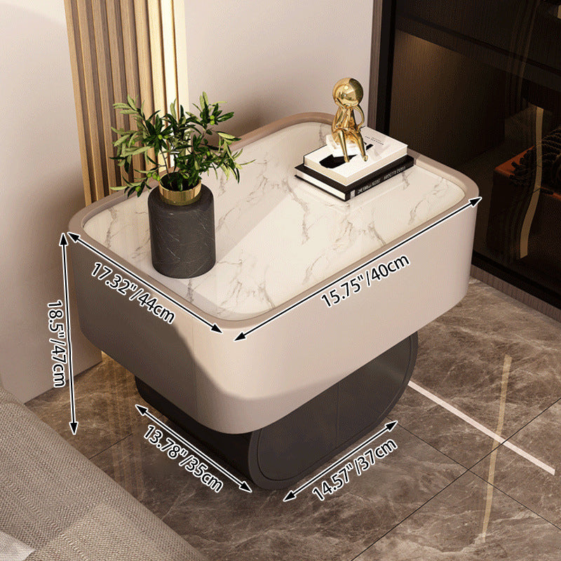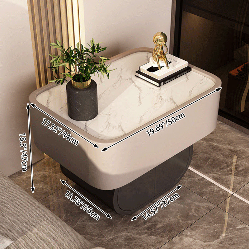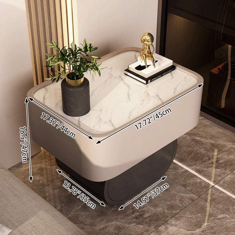 Contemporary Luxury Cylindrical Rectangular Slab Stone Solid Wood Medium Density Fiberboard Faux Leather Nightstand 2-Drawer For Bedroom