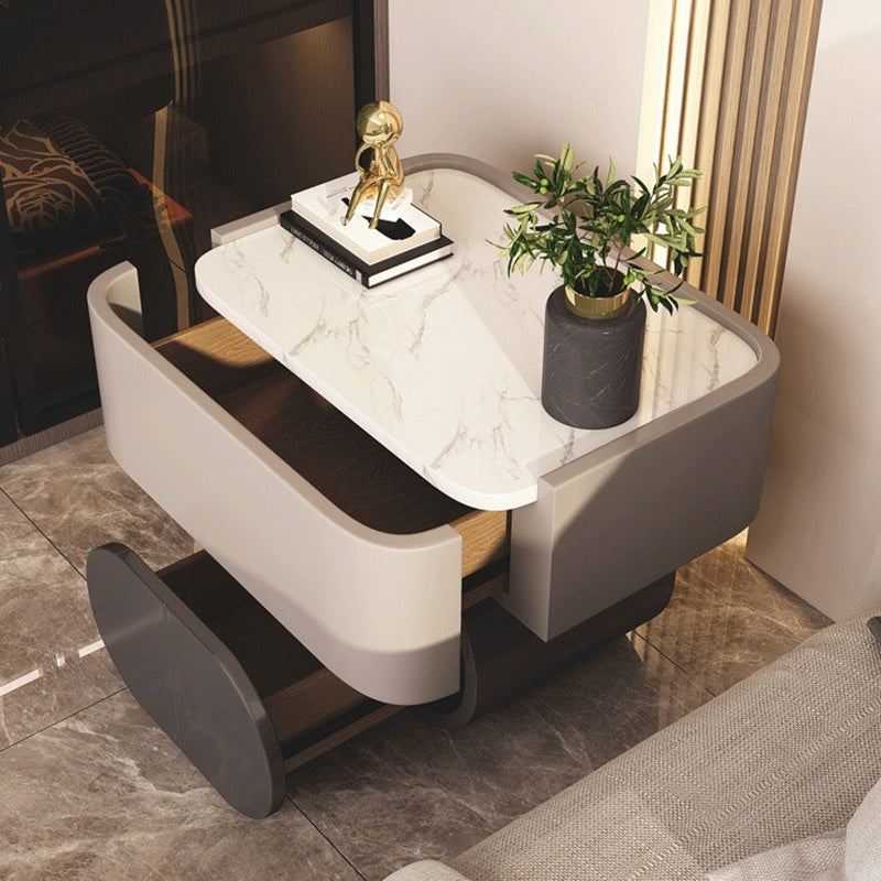 Refine your sleep sanctuary with this contemporary luxury nightstand, where high-end materials meet a clean rectangular design. The centerpiece is a durable sintered stone top that is both heat-resistant and exceptionally resilient, paired with a stable construction that ensures a strong weight capacity. With two smooth-glide drawers for organized bedside storage and rounded safety edges for a soft finish, this piece is available in white, black, or khaki, offering an elegant and practical choice for the modern bedroom.